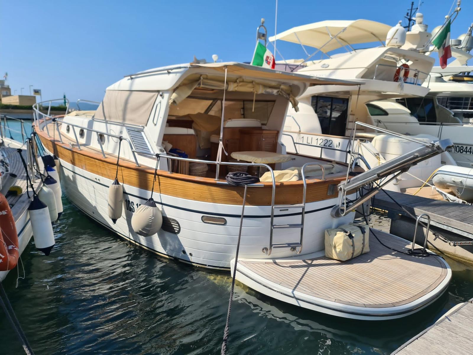 Aprea 45 Comfort 45 de 2006 immatriculé en 2007 avec deux Volvo Penta 500hp avec moteurs révisés en 2016. coque à zéro en 2021. Cabine principale avant avec salle de bains et cabine invités avec deux lits à l’étage avec salle de bains, coin repas avec cuisine équipée. Générateur 3,5 kw .
