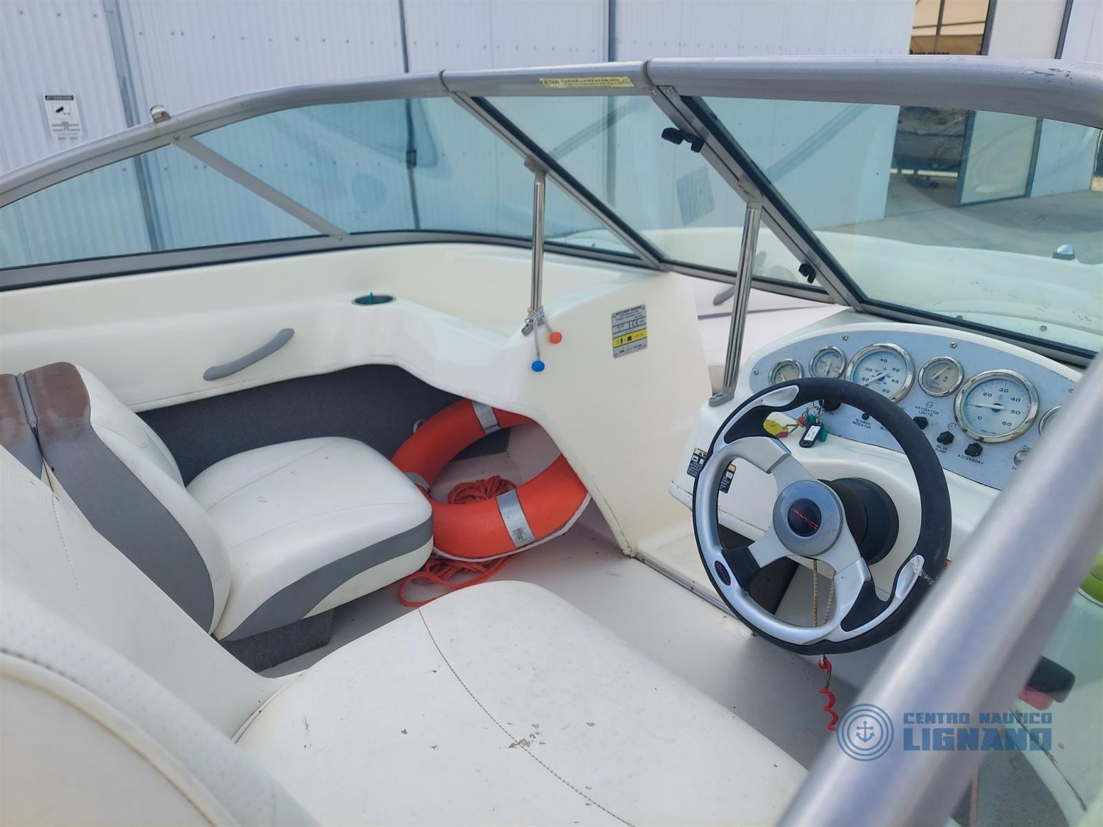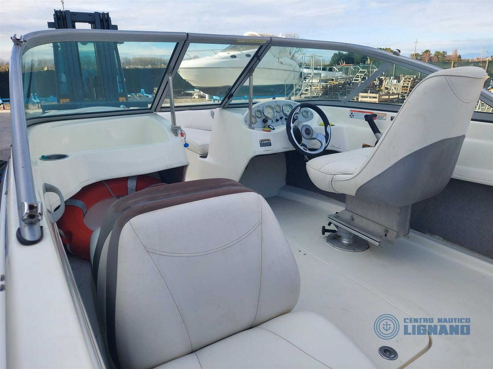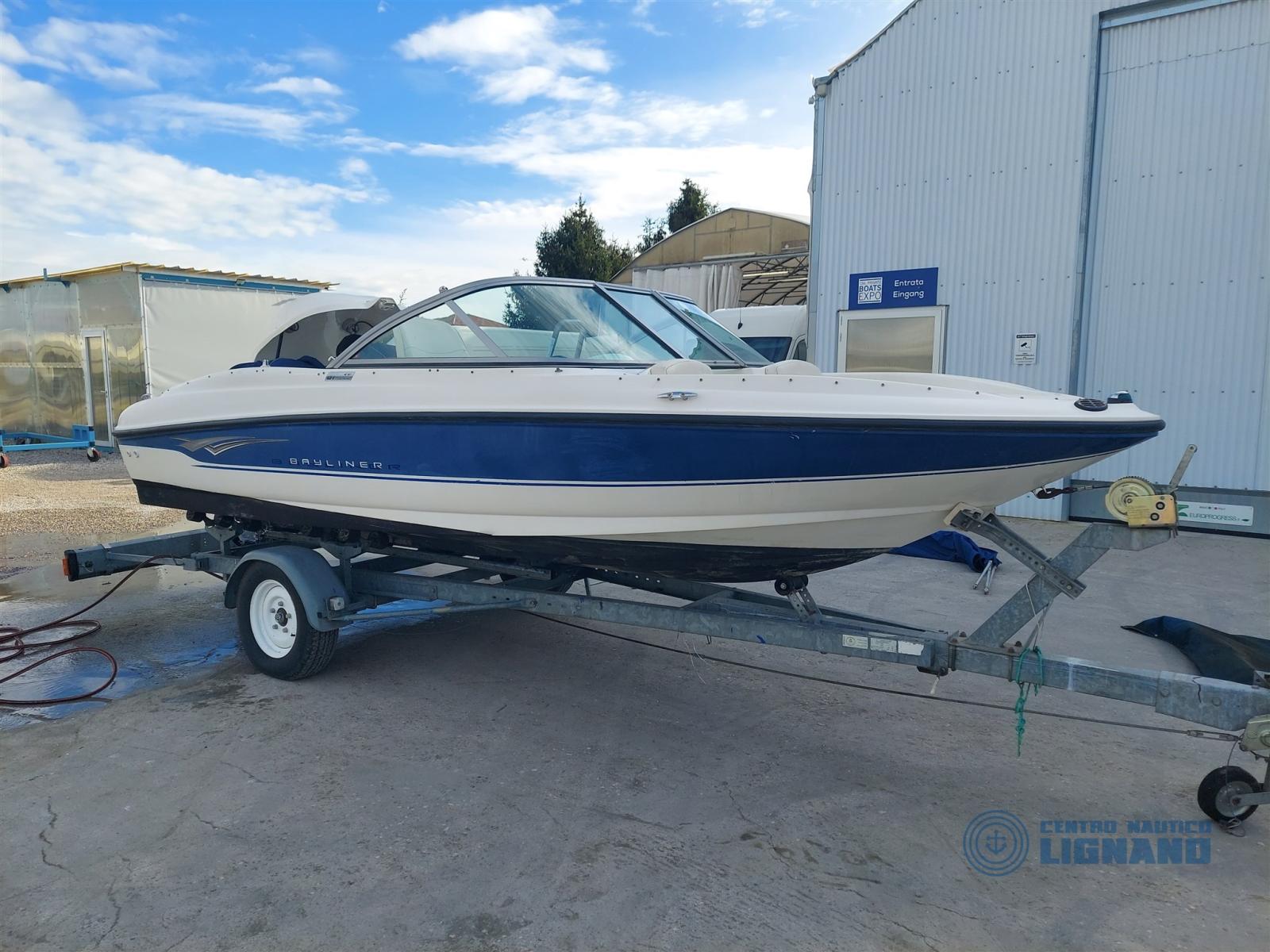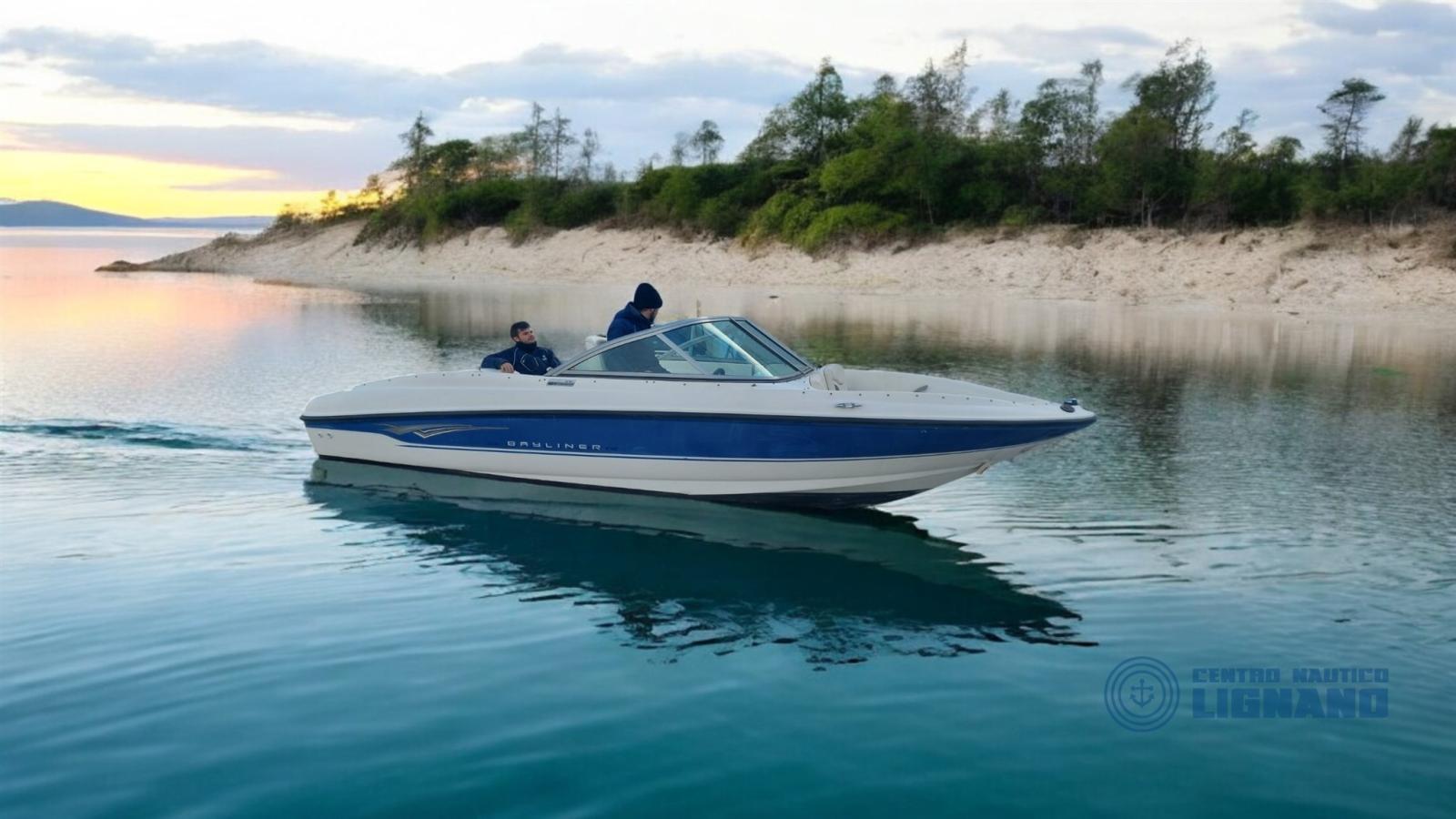 Bateau Bayliner 175 GT de 2009, visible au chantier Centro Nautico Lignano, moteur sterndrive Mercruiser MCM 3.0L 135Hp, coussins extérieurs blancs en bon état, sièges conducteur réglables, bimin en acier avec auvent, housses de fin de vie à refaire, bon état général, peu d’heures, non détectable, seul propriétaire. Bateau en consignation de l’agence Centro Nautico Lignano.