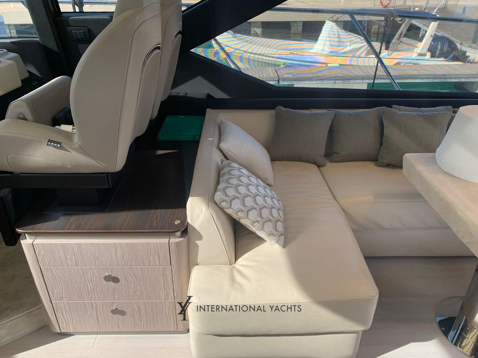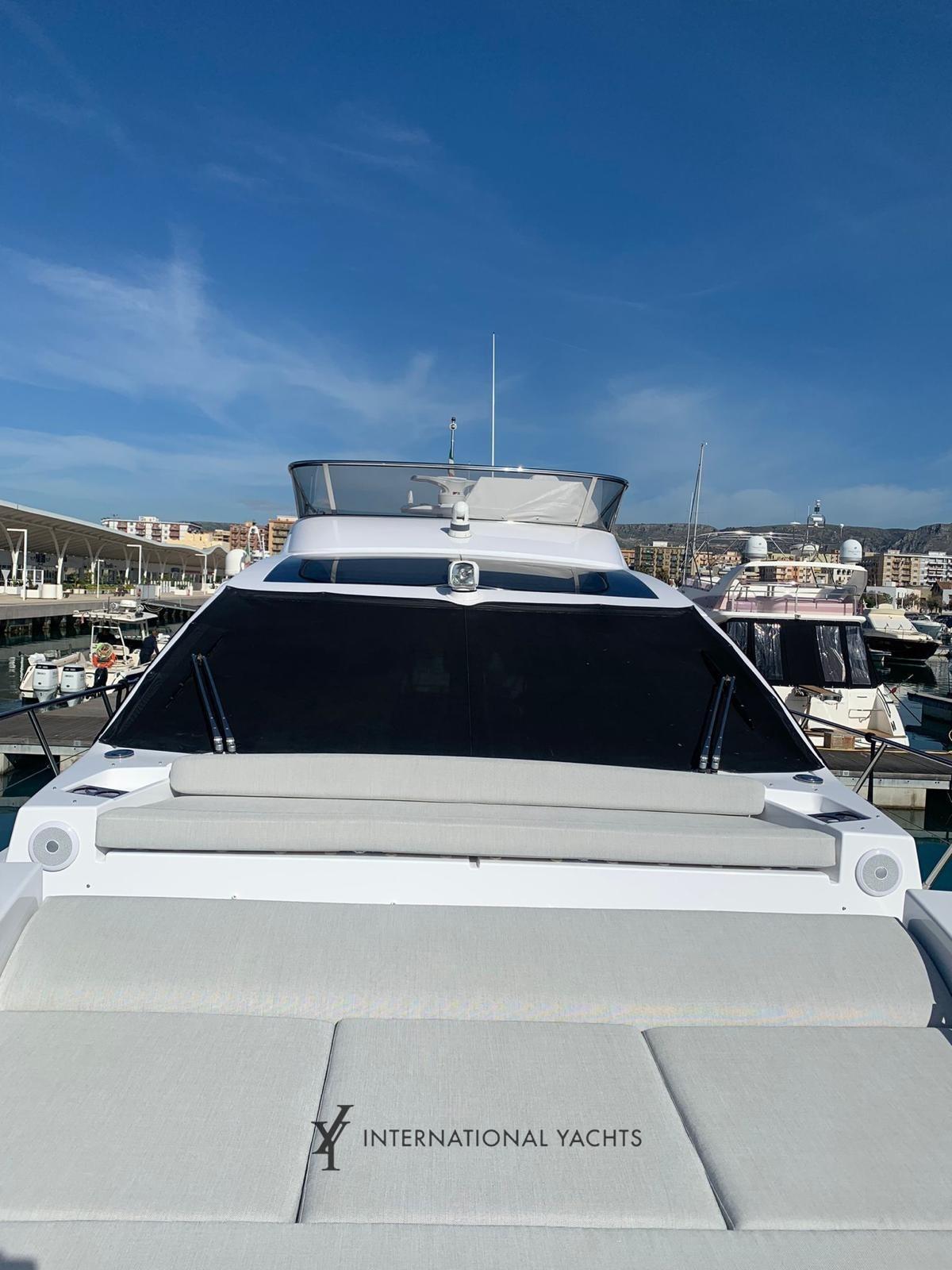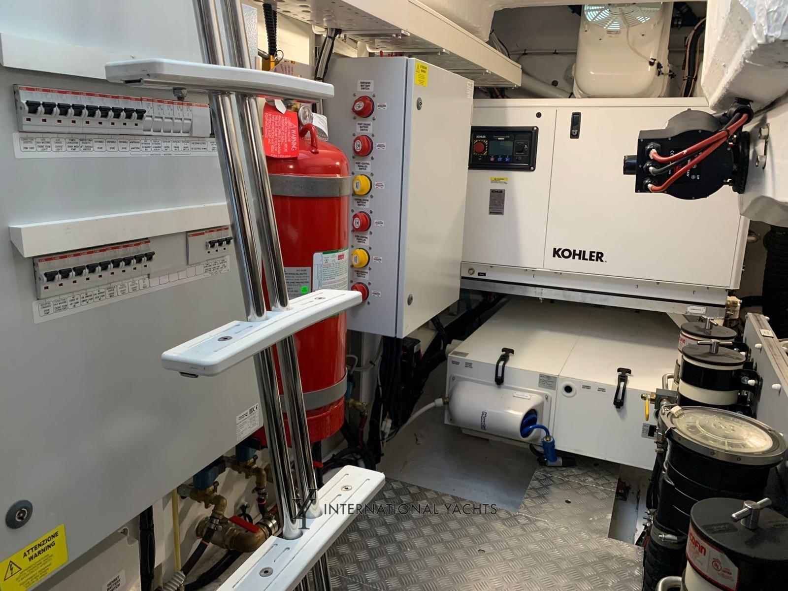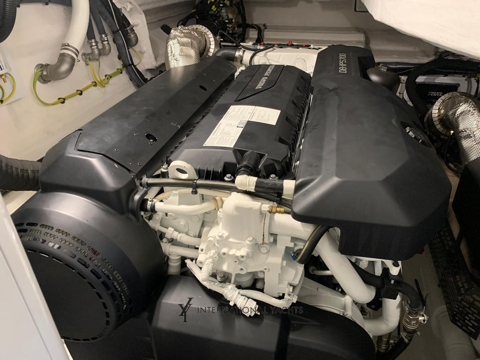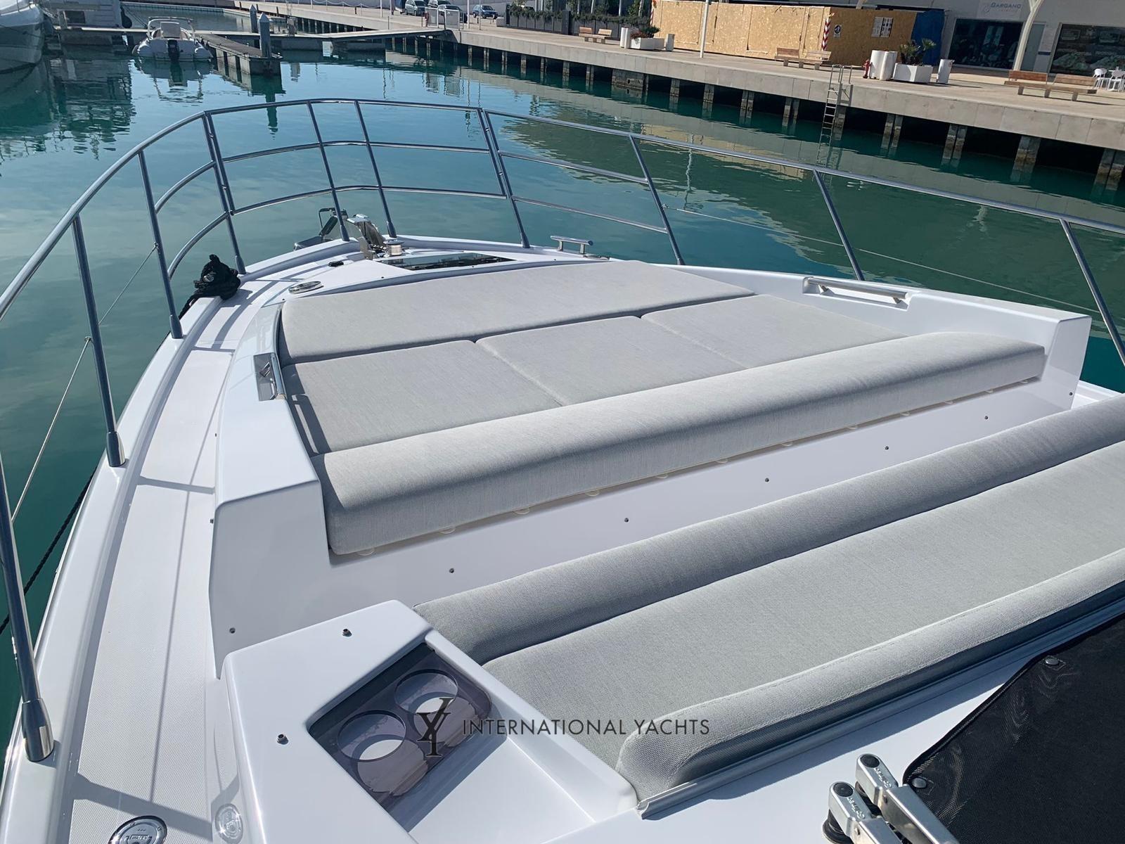 Air conditionné (72 BTU), Bimini (Sur le fly et la proue avec poteaux en carbone), Cuisine (Miele induction), Coussins complets (En Batyline), Coussins d’étrave (En Batyline), Four (Miele), 2 Réfrigérateur externe (Dans le cockpit et sur le flybridge), Occultants (Rideau électrique pour le toit du salon), Plancher intérieur en bois (Berline, dinette et descente d’escalier), Couvre-fenêtres, Rideau électrique (Pare-soleil dans le cockpit avec onduleur), Toilette marine manuelle (Tecman avec bidet intégré), moustiquaires (Hublot), système Volvo Interceptor ; Filtres Racor pour générateur ; Filotri Racor en double ; Prédisposition pour le dessalinisateur ; Conduits électriques supplémentaires ; Isolateur galvanique ; Armoire dans le cockpit avec frogorifer, bbq et évier ; Rabat arrière pour le bain de soleil ; Toit fixe avec insertions de verre ; Système de haut en bas pour la télévision du salon ;