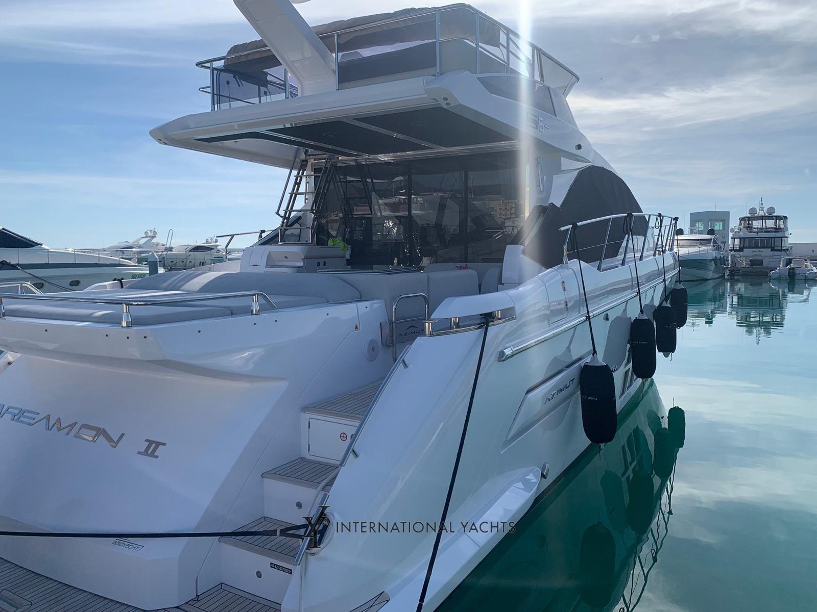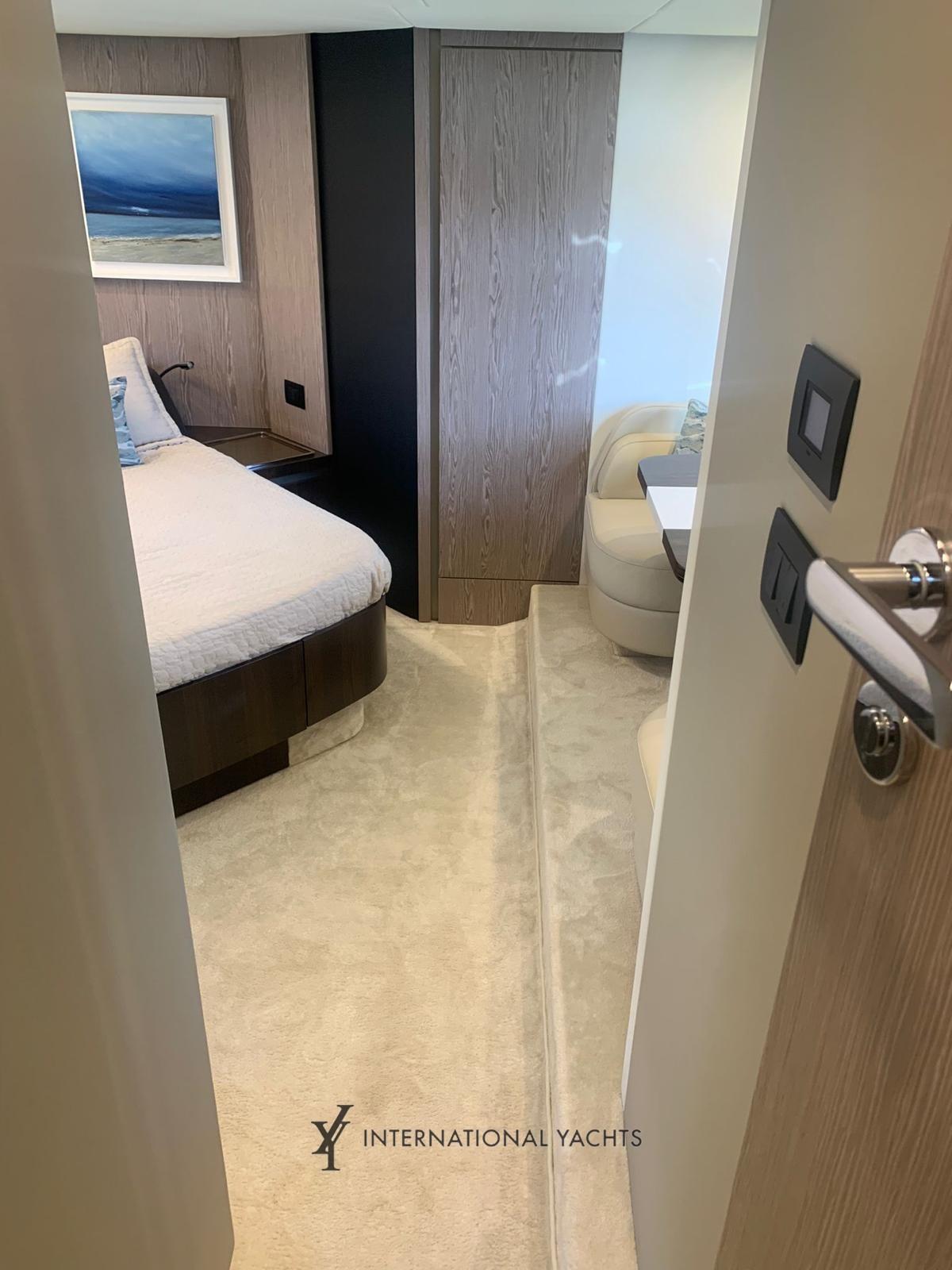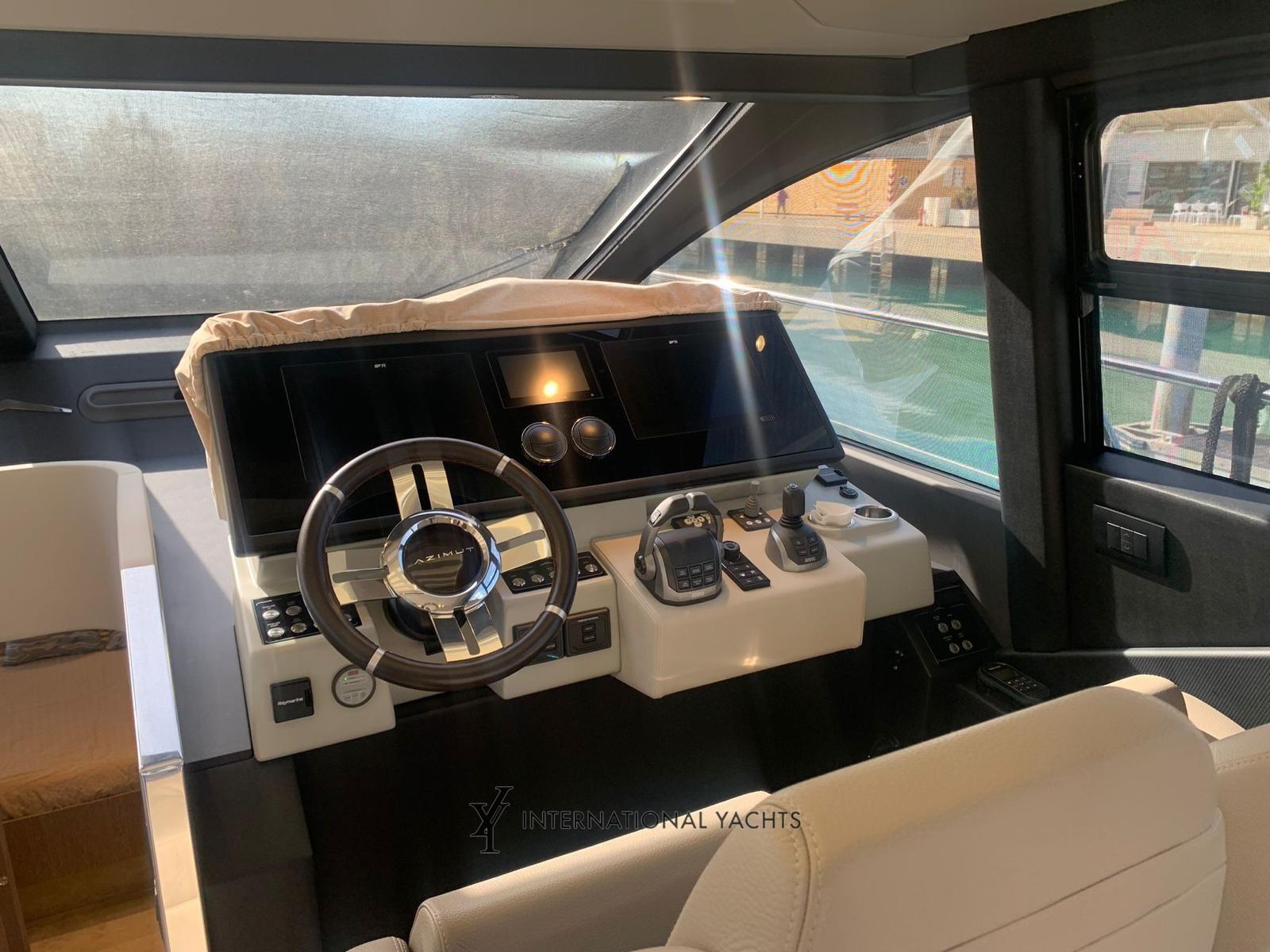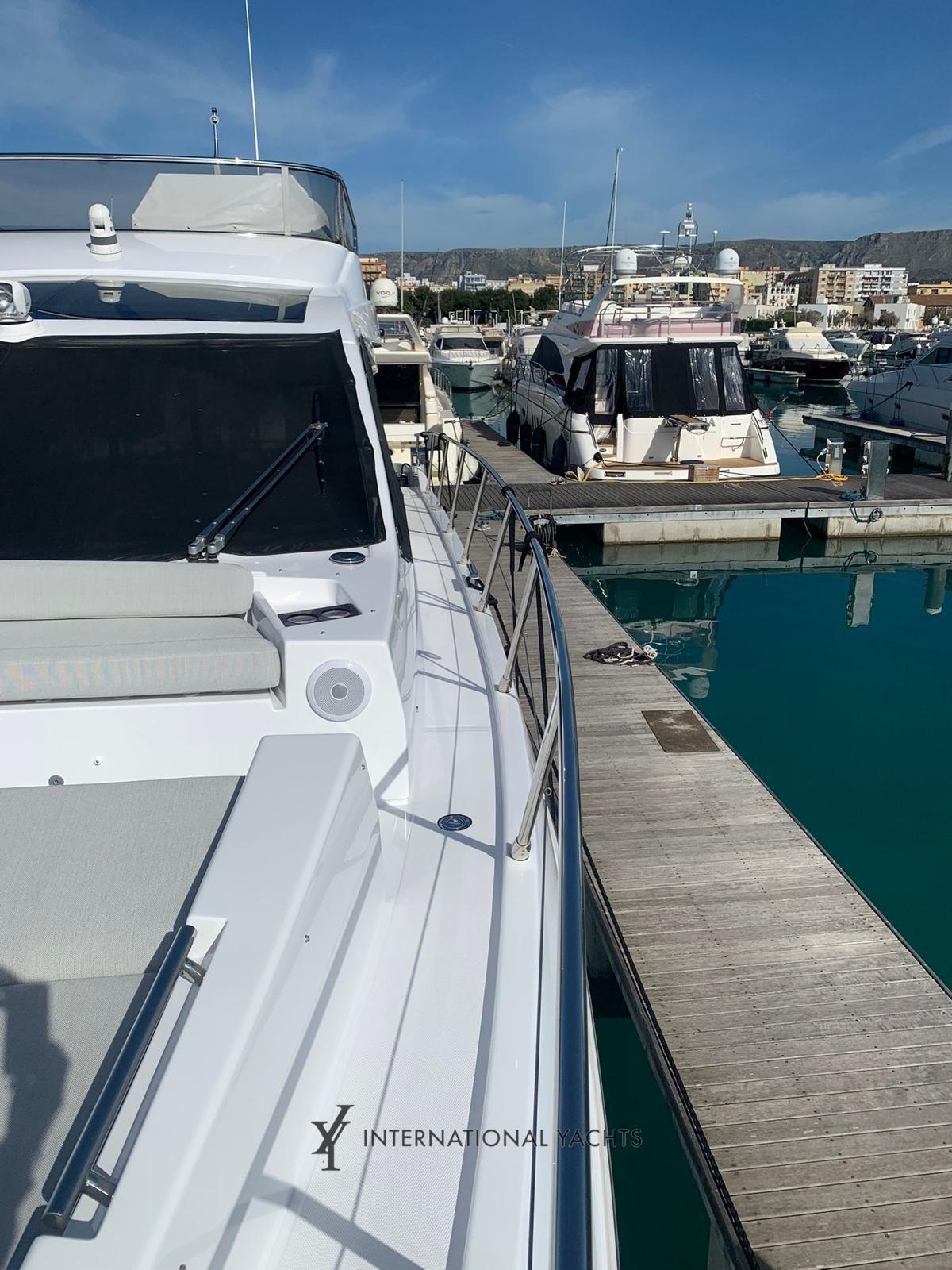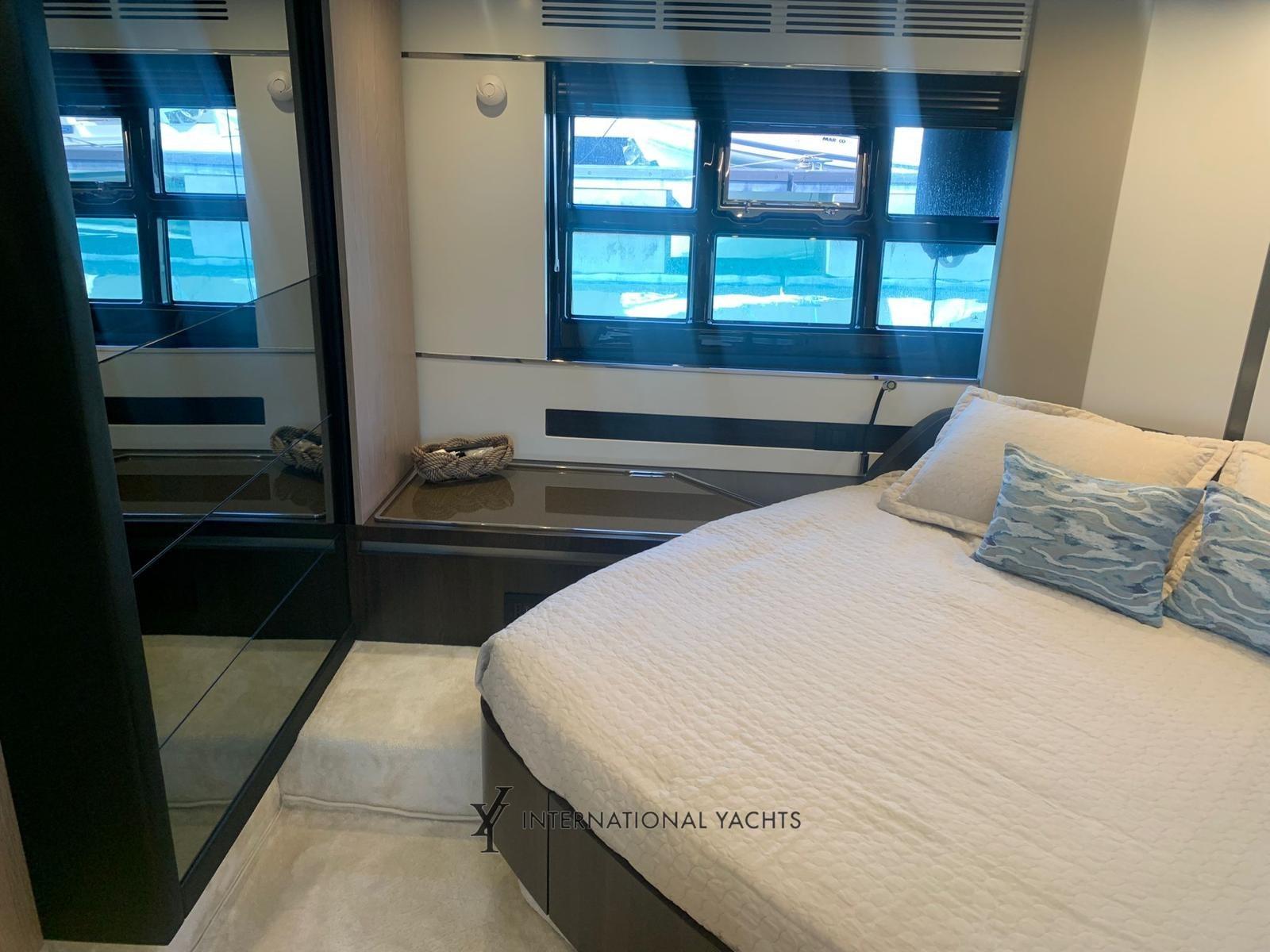 Air conditionné (72 BTU), Bimini (Sur le fly et la proue avec poteaux en carbone), Cuisine (Miele induction), Coussins complets (En Batyline), Coussins d’étrave (En Batyline), Four (Miele), 2 Réfrigérateur externe (Dans le cockpit et sur le flybridge), Occultants (Rideau électrique pour le toit du salon), Plancher intérieur en bois (Berline, dinette et descente d’escalier), Couvre-fenêtres, Rideau électrique (Pare-soleil dans le cockpit avec onduleur), Toilette marine manuelle (Tecman avec bidet intégré), moustiquaires (Hublot), système Volvo Interceptor ; Filtres Racor pour générateur ; Filotri Racor en double ; Prédisposition pour le dessalinisateur ; Conduits électriques supplémentaires ; Isolateur galvanique ; Armoire dans le cockpit avec frogorifer, bbq et évier ; Rabat arrière pour le bain de soleil ; Toit fixe avec insertions de verre ; Système de haut en bas pour la télévision du salon ;