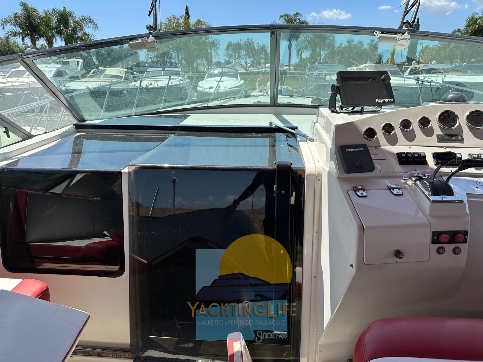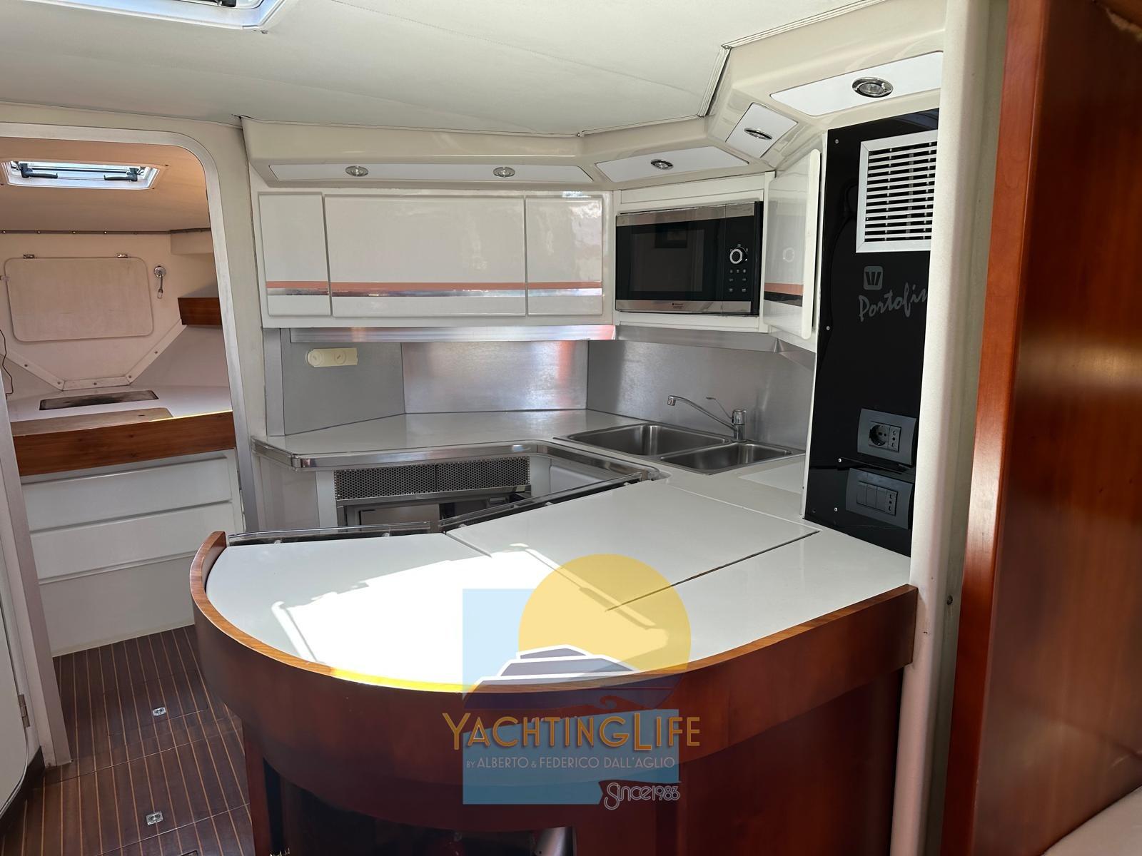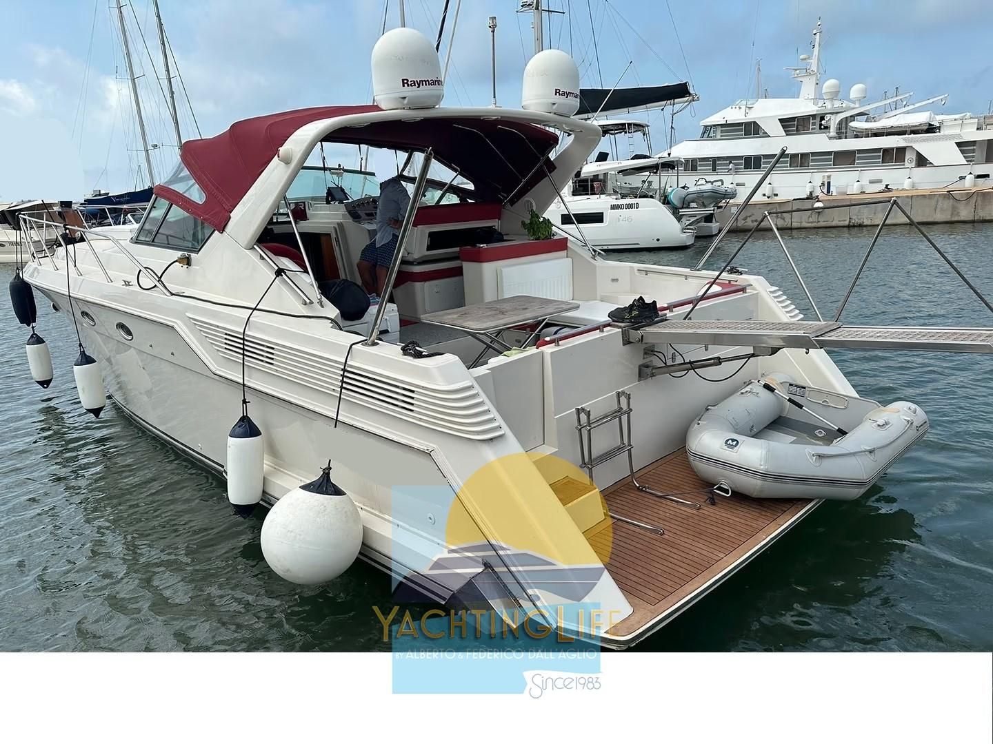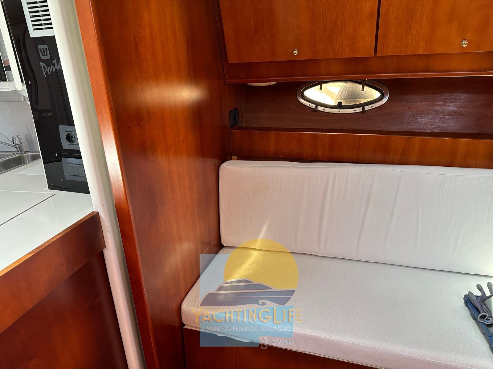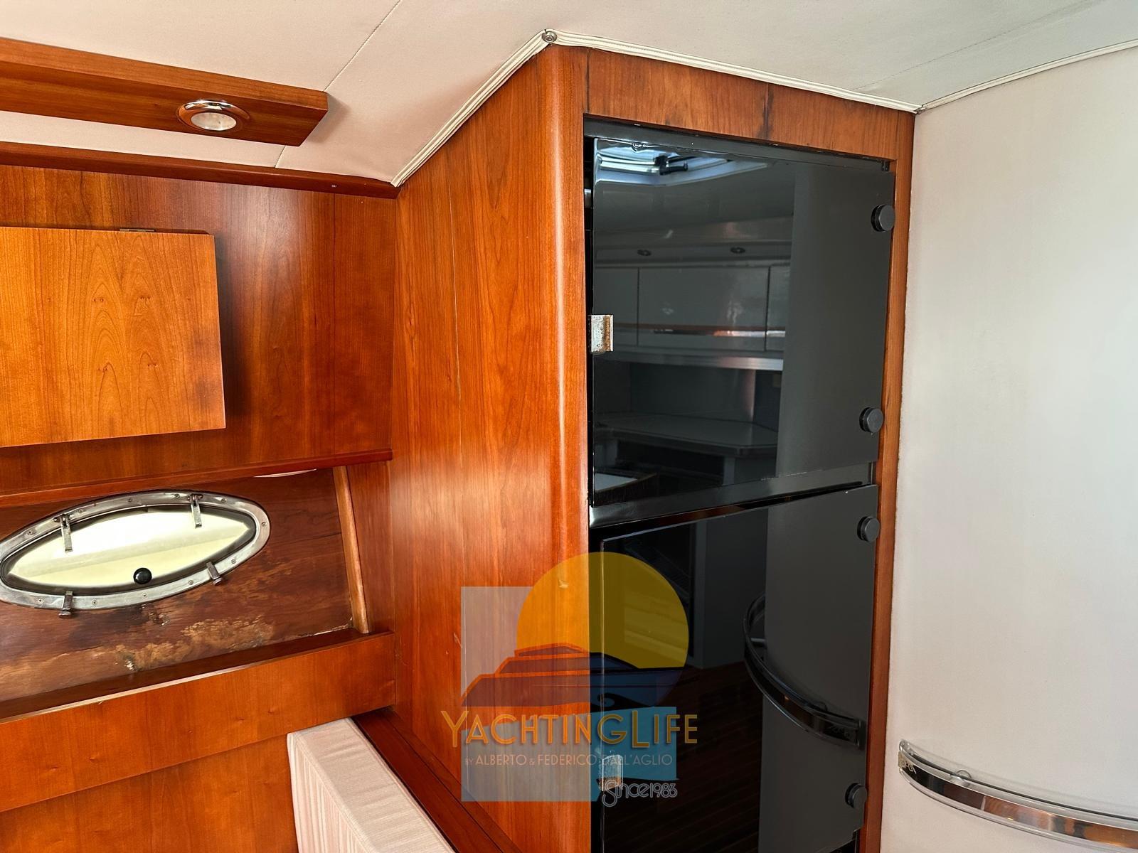 Alarme moteur, Eau sous pression, Trim hydraulique (Mente Marine), Douche de cockpit, Flaps hydrauliques, Indicateurs de flaps, Éclairage de courtoisie, Spots sous-marins, Passerelle (Idraulica), Plateforme arrière, Porte latérale (Da sistemare), Prise de quai, Rollbar, Guindeau électrique, Echelle de bain, Corne.