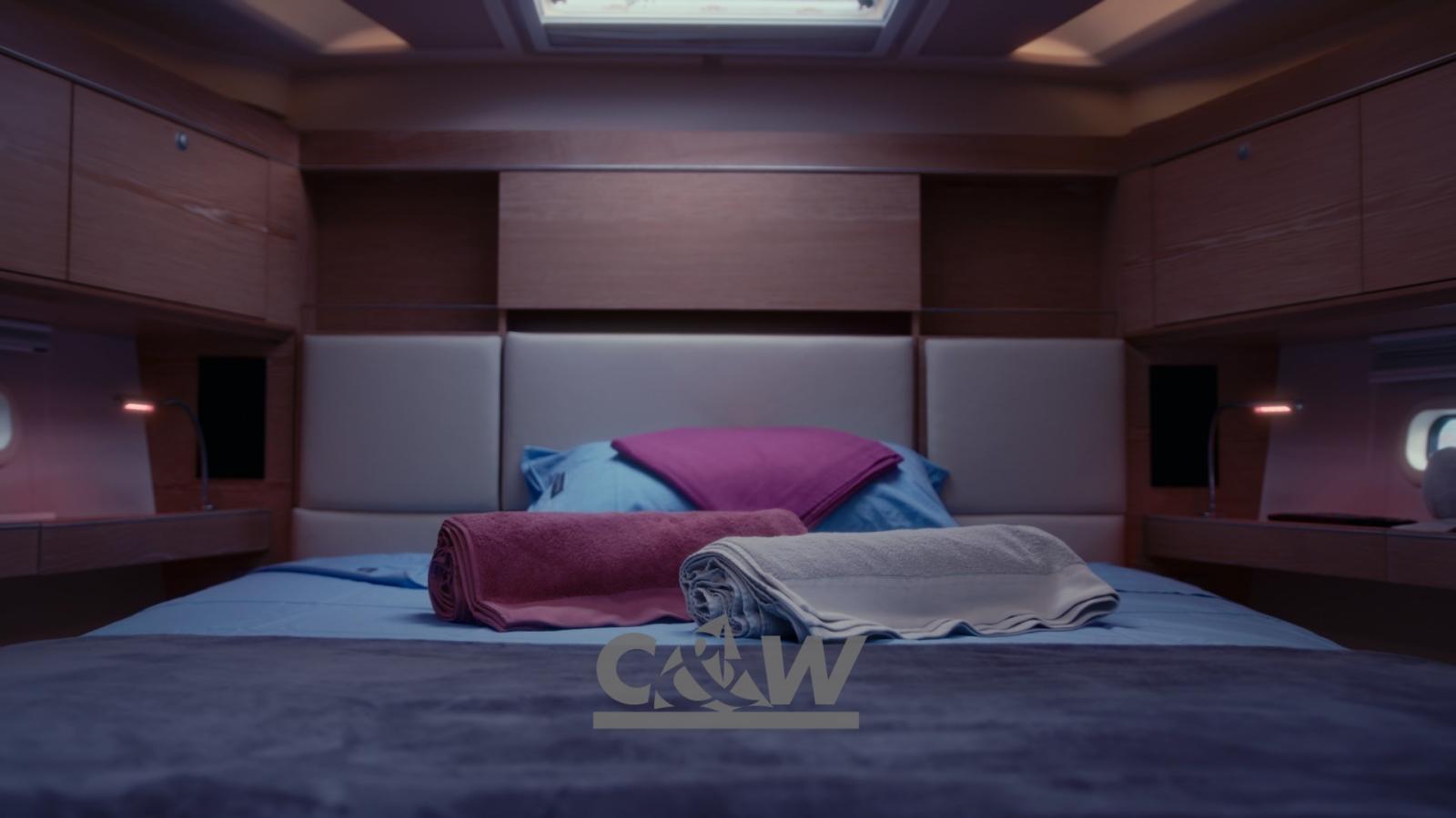 Coque grise, pont en teck, 4 cabines, 2 salles de bain + cabine équipage, intérieur lumineux