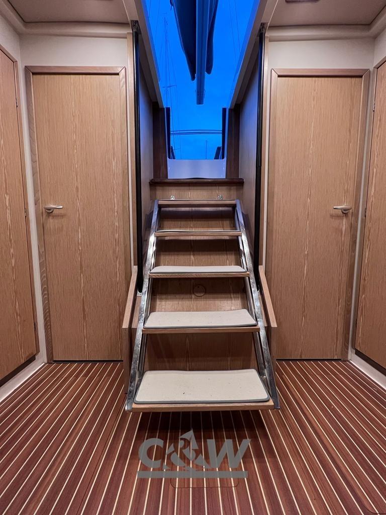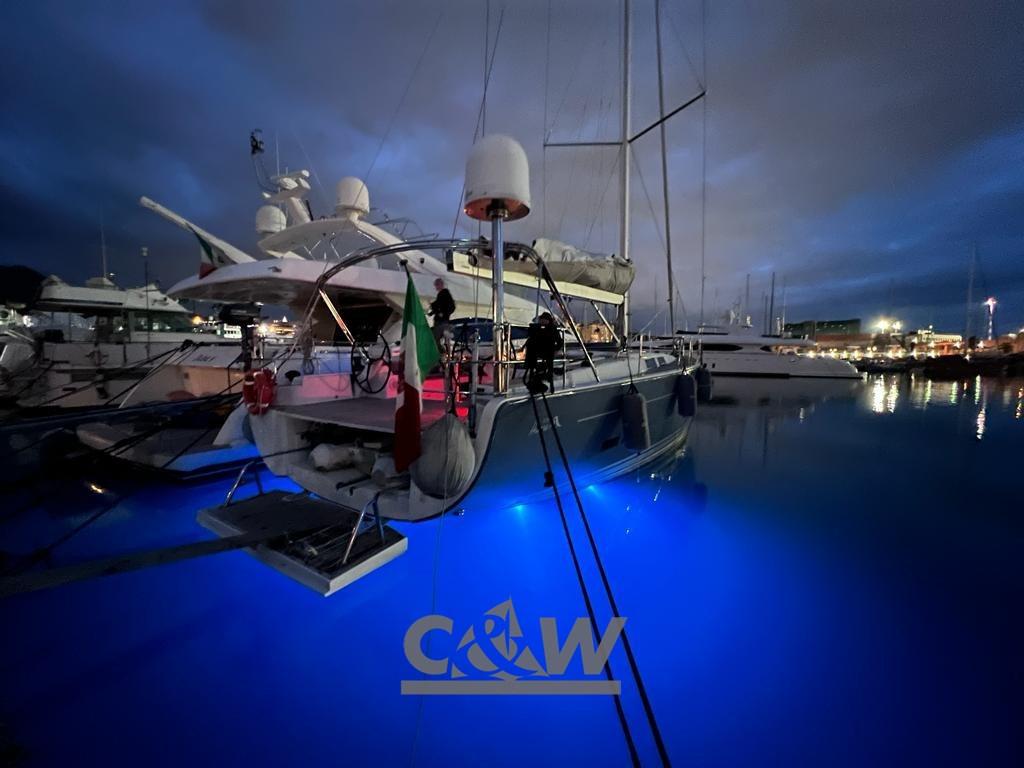 Ancre (Ultra 40 kg con perno girevole Power Ball e 100 mt catena in acciaio inox), Eau sous pression, 7 Batteries (2023 (3 servizi, 1 motore, 1 winch, 2 elica di prua)), Passavant en teck, Chargeur de batterie (50A), Couleur spéciale (scafo grigio), Douche de cockpit (acqua calda e fredda), Double barre à roue (ruote in composito nere), Propulseur d'étrave (con 2 batterie dedicate(2023)), Garage à annexe, Spots sous-marins, Passerelle (in carbonio), Plateforme arrière (idraulica), Pompe de cale automatique, Pompe de cale manuelle, Cockpit en teck, Prise de quai, Guindeau électrique (Quick con telecomando), Chaise support HB, 2 table de cockpit (abbattibili elettricamente), Annexe (Selva 2,75 (2018 con motore Yamaha 6cv (2021)), Pont en teck, 3 Winch, Winch électrique (con batteria dedicata).