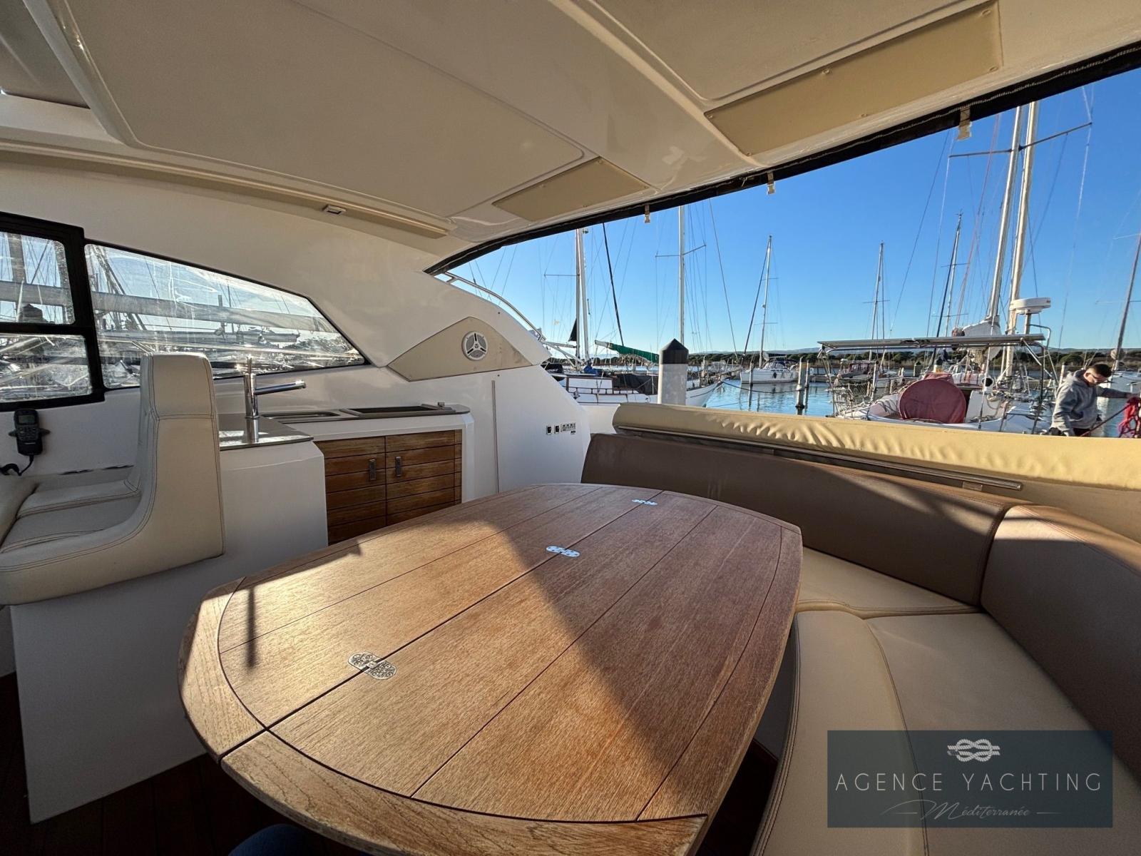 À vendre, magnifique SESSA MARINE C43 HARD TOP de 2011, une véritable référence en matière de luxe et de performance. Ce yacht de 13,60 m, motorisé par deux moteurs Volvo IPS500 D6 de 370 CV (644 heures de navigation), offre une navigation fluide, rapide et économique grâce à sa technologie IPS innovante. Sa coque noire, d’une élégance indéniable, est en bon état général, tout comme l'intérieur. La sellerie extérieure a été partiellement refaite, et le Teck est en excellent état général. Le bateau est très bien équipé : passerelle hydraulique encastrée, groupe électrogène, climatisation, électronique complète pour une navigation précise et confortable. Le joystick Volvo et le propulseur d'étrave garantissent des manœuvres faciles et sécurisées, même dans les espaces les plus confinés. Parfait pour les passionnés de navigation exigeants, ce SESSA MARINE C43 allie confort, performance et design raffiné. Ne manquez pas cette occasion exceptionnelle !