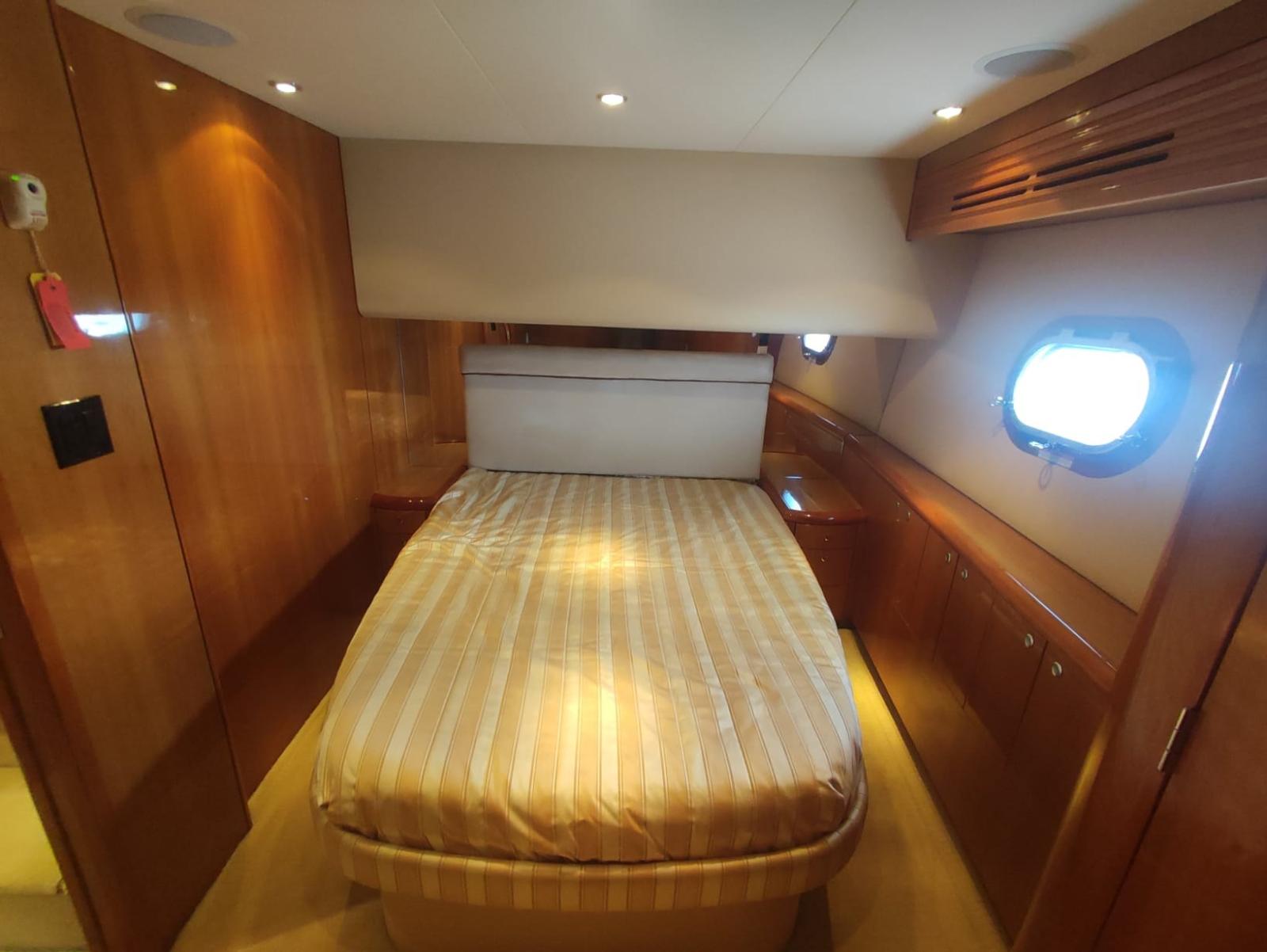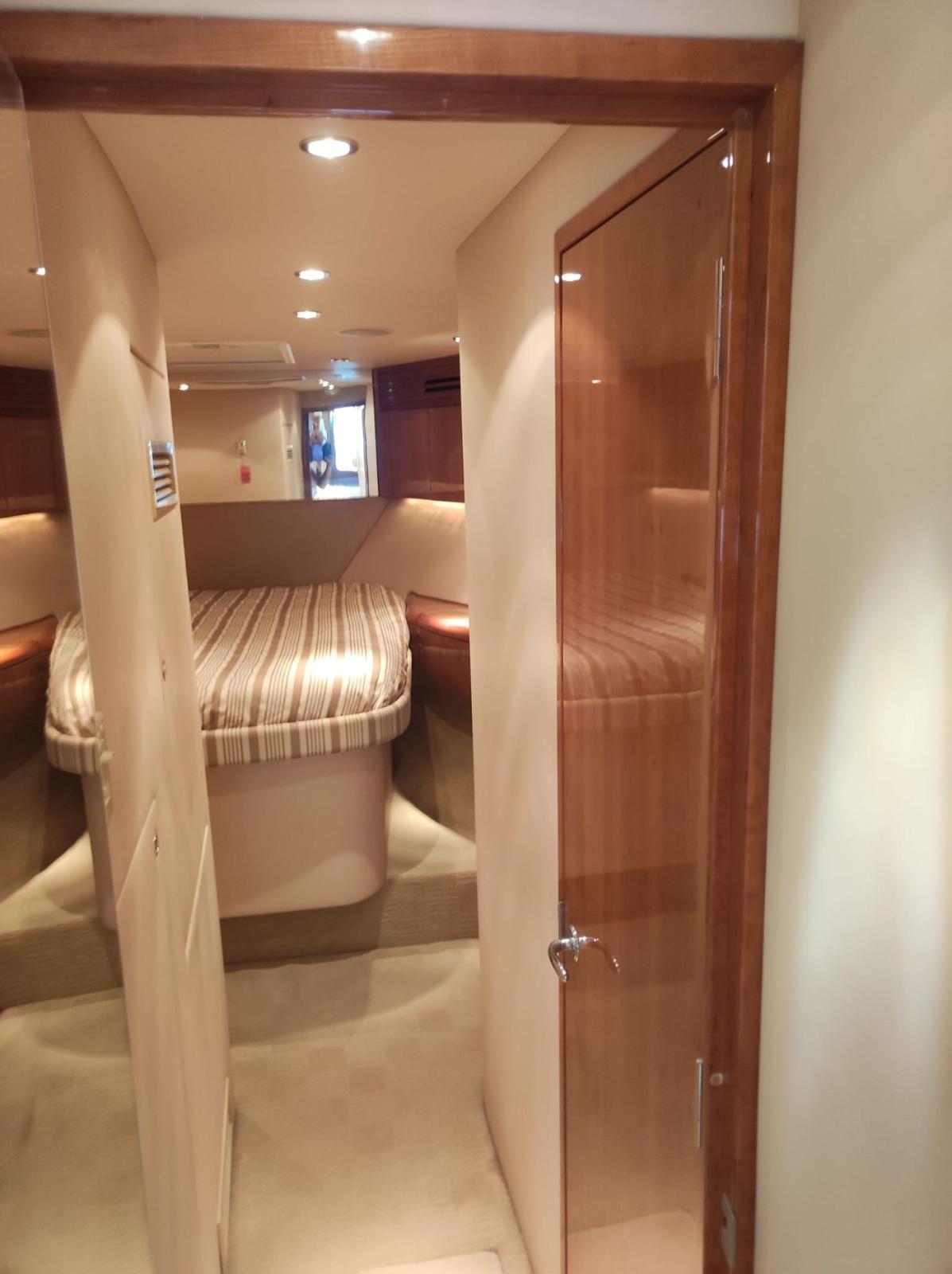 Cabine principale à bâbord avec lit double, grande armoire et commodes