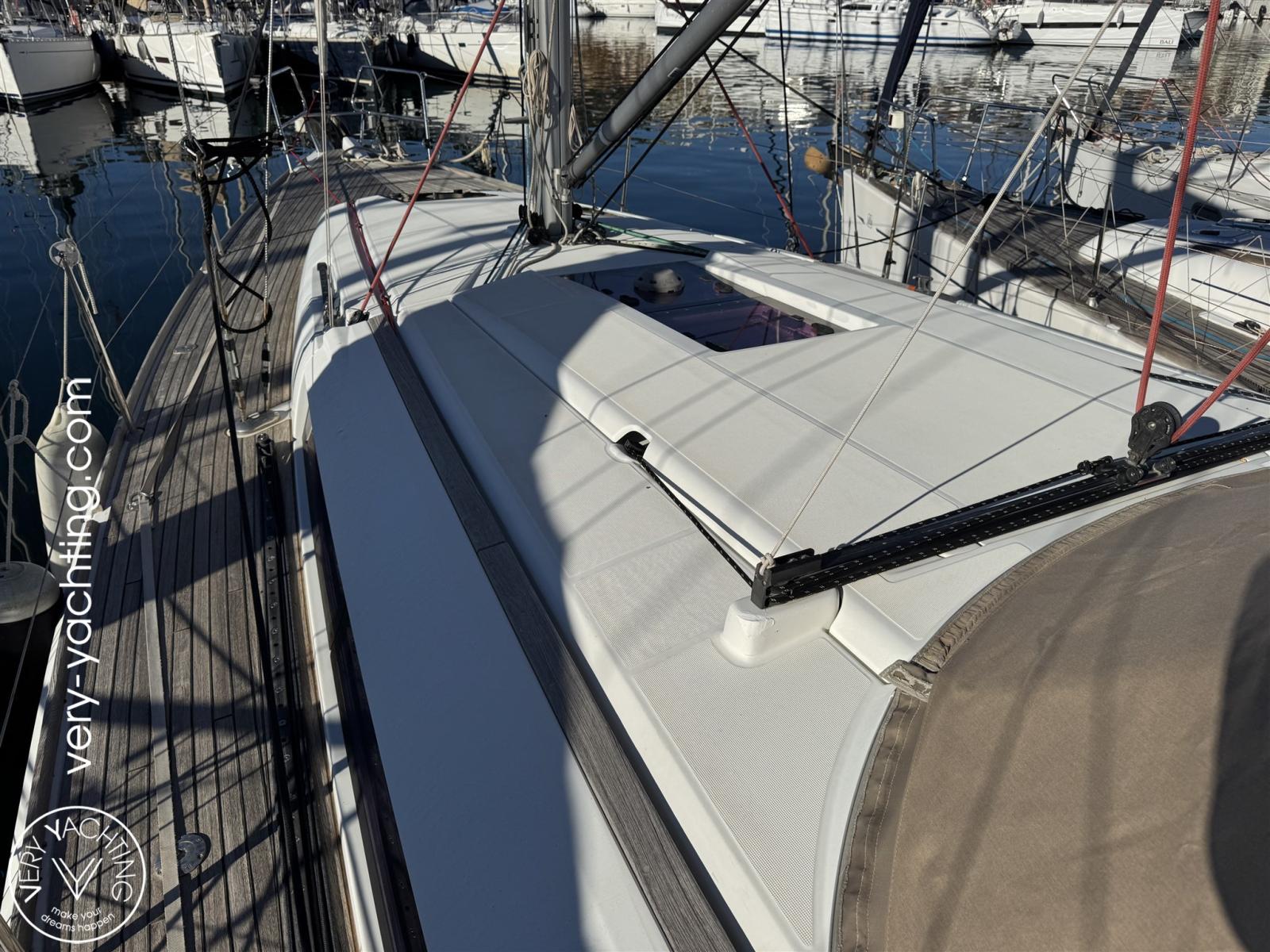4 Batteries (3 xService 1x moteur), Douche de cockpit, Double barre à roue (avec housses), Propulseur d'étrave (2020), Éclairage de courtoisie, Spots sous-marins, Moteur d'annexe (Suzuki 2T 2,2CV), Panneau solaire (sur bimini), Plateforme arrière, Pompe de cale manuelle, Cockpit en teck, Guindeau électrique (chaine 50m), Gréement monotoron (1x19), table de cockpit, Annexe, Pont en teck.