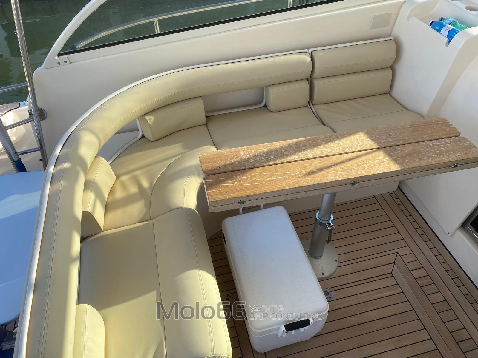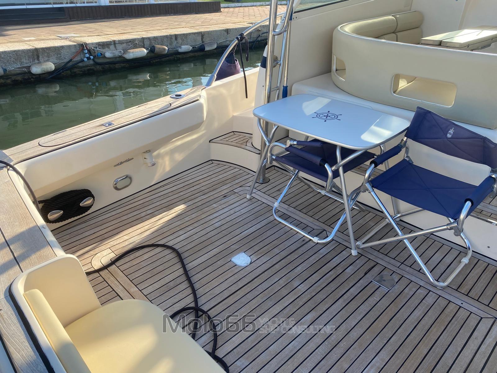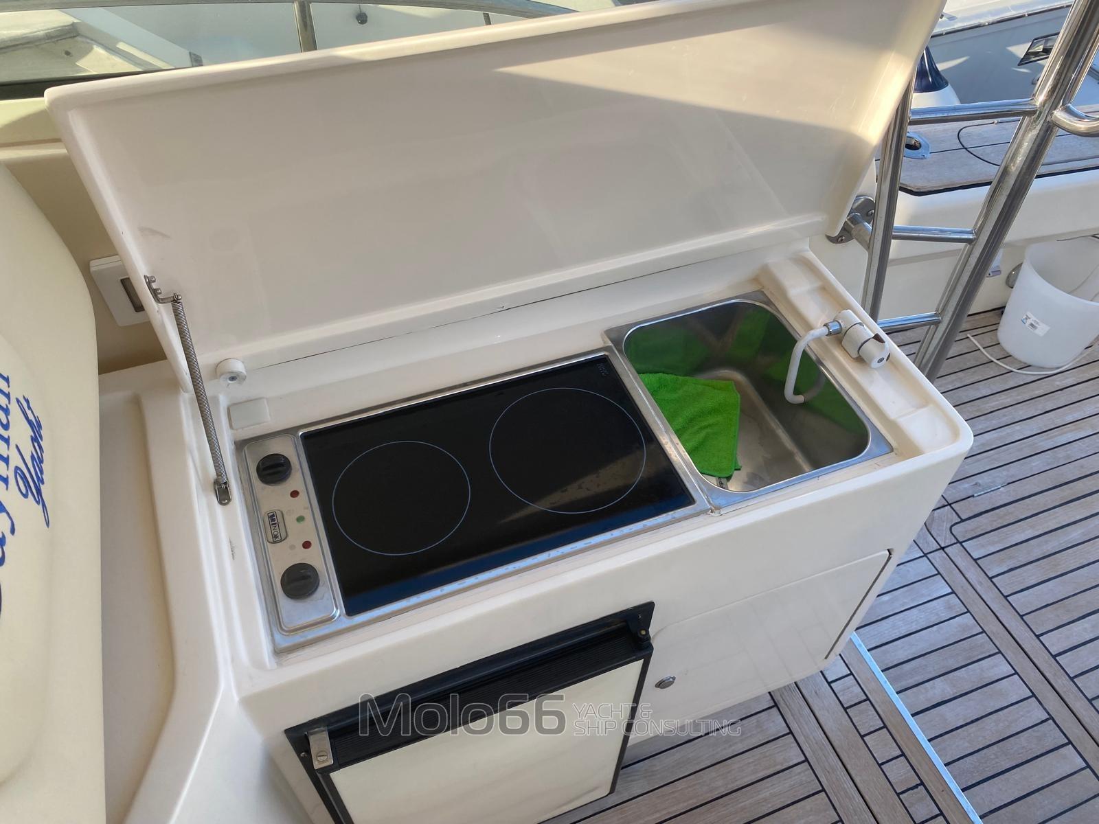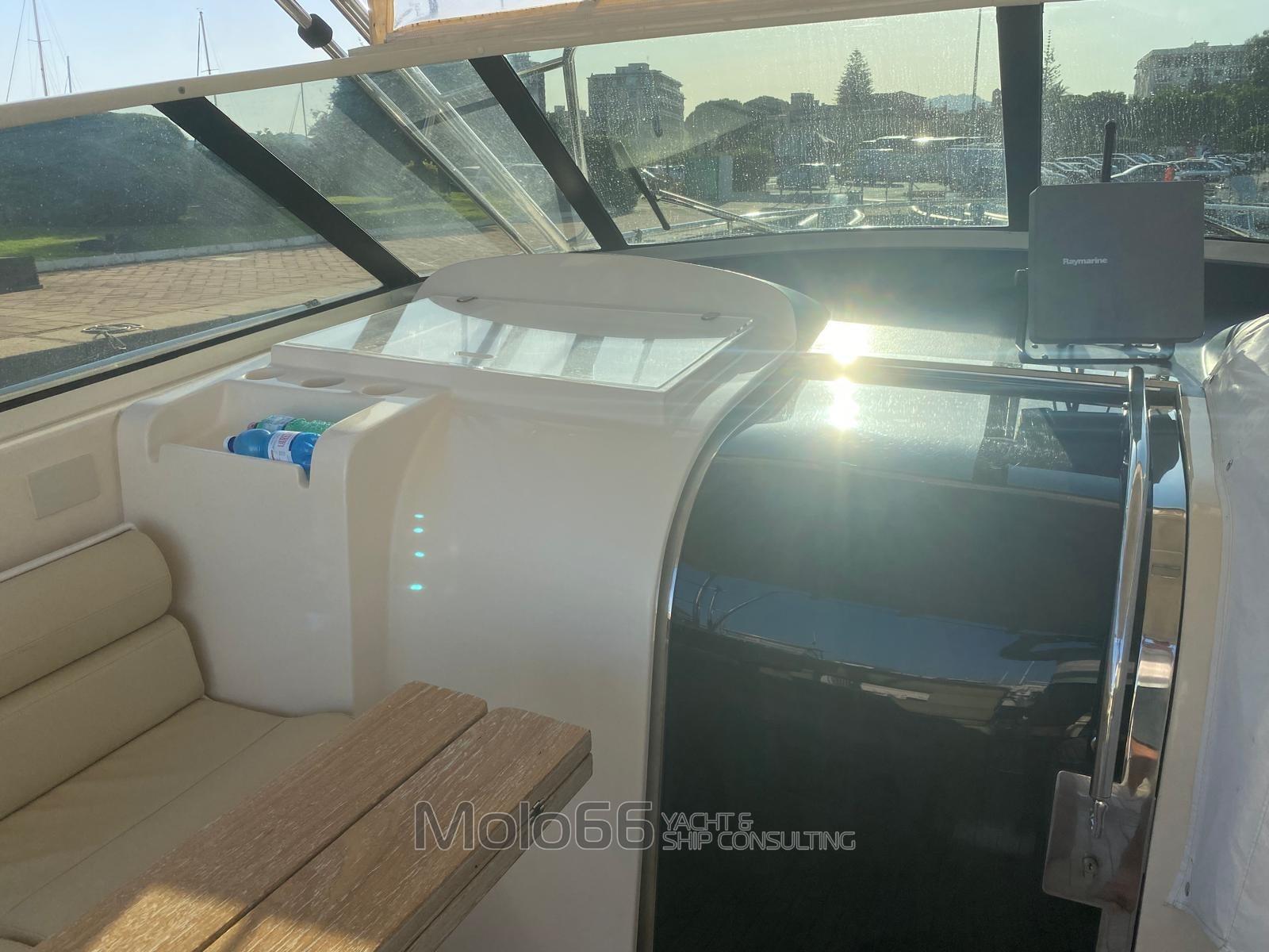 Alarme moteur, Alarme de pompe de cale, Eau sous pression, Douche de cockpit, Flaps électriques, Extincteur(s) fixe(s), Lavabo dans le cockpit, Pompe de cale automatique, Pompe de cale manuelle, Cockpit en teck, Prise de quai, Onduleur, table de cockpit, T-Top.