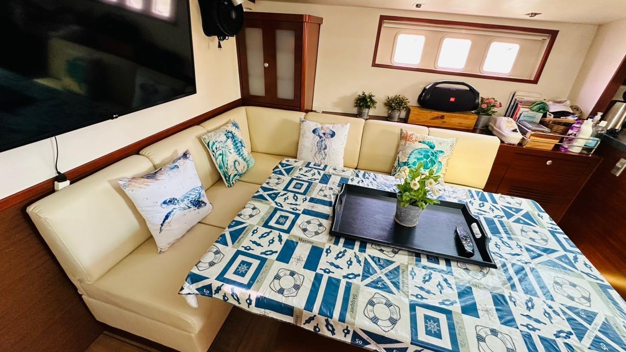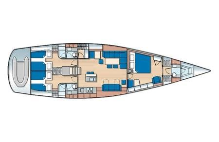 3 cabines avec salle de bain privative + 1 salle de bain en dinette + cabine équipage
