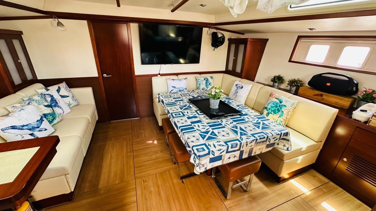 Ballon d'eau chaude (elettrico), Air Conditionné, Dessalinisateur (100 l/h), Cuve à eaux noires, Plancher intérieur en bois, Prises interieures 12v, Prises interieures 220v, Réservoir d'eau noire, 3 Toilettes électriques, Toilettes manuelles.