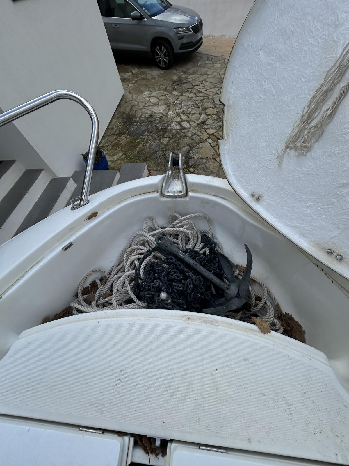 Guindeau manuel (100m de corde, 18m de chaîne, ancre de 2017).
