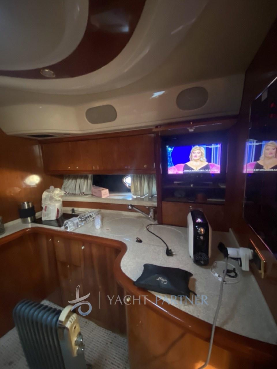 Alarme moteur, Alarme de pompe de cale, Eau sous pression, 5 Batteries (N.2 Motore 220ah (2022) N.2 Servizi 220ah (2023) N.1 Generatore 80ah (2023)), Douche de cockpit, Phare de poursuite, Flaps hydrauliques, Garage à annexe, Extincteur(s) fixe(s), Éclairage de courtoisie, Spots sous-marins, Passerelle (Besenzoni), Plateforme arrière (2022), Pompe de cale automatique, Cockpit en teck, Prise de quai, Connexion eau sous pression à quai, Guindeau électrique, Echelle de bain, table de cockpit.