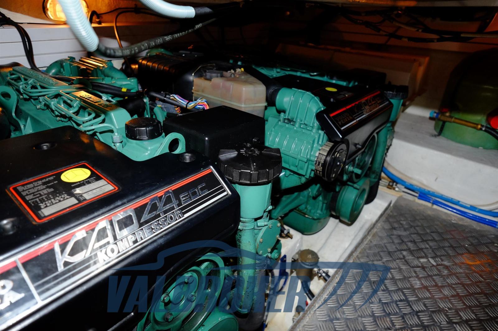 2 moteurs Volvo Penta Kad44 de 260 ch. Grand bain de soleil arrière fixe, canapé confortable avec table de cockpit, intérieurs bien finis et bien entretenus. 2 cabines, 1 salle de bain. Entièrement en option, générateur Mase de 5 kw, chauffage, radar, pilote automatique, propulseur d’étrave. Couverture complète.