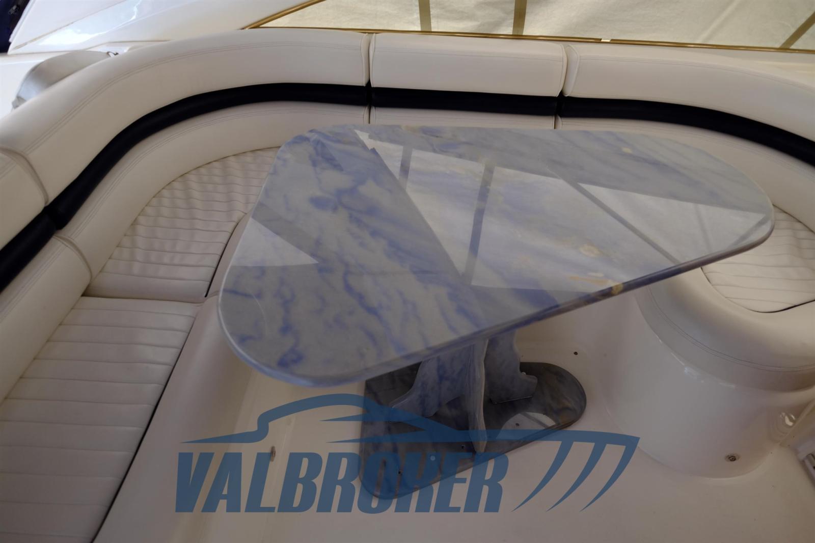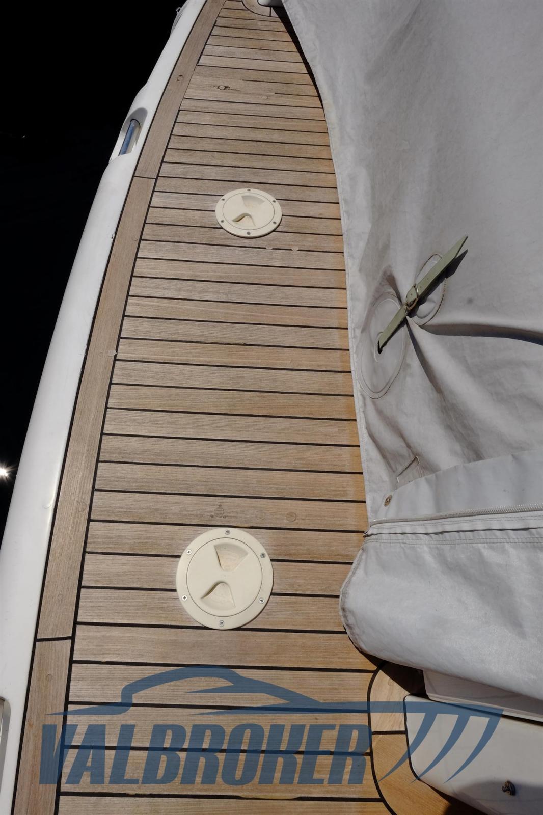 Travaux réalisés entre 2021 et 2023 : Révision complète du moteur et du générateur, remplacement du cône de transmission gauche et droit, nouvelle dînette en alcantara, nouveau teck sur la plate-forme, peinture de bande intermédiaire turquoise, nouveau réfrigérateur en acier inoxydable