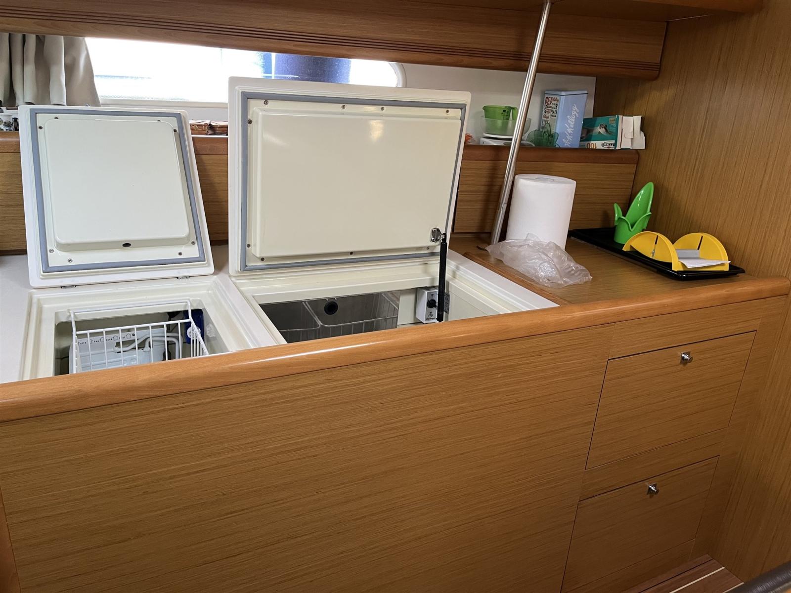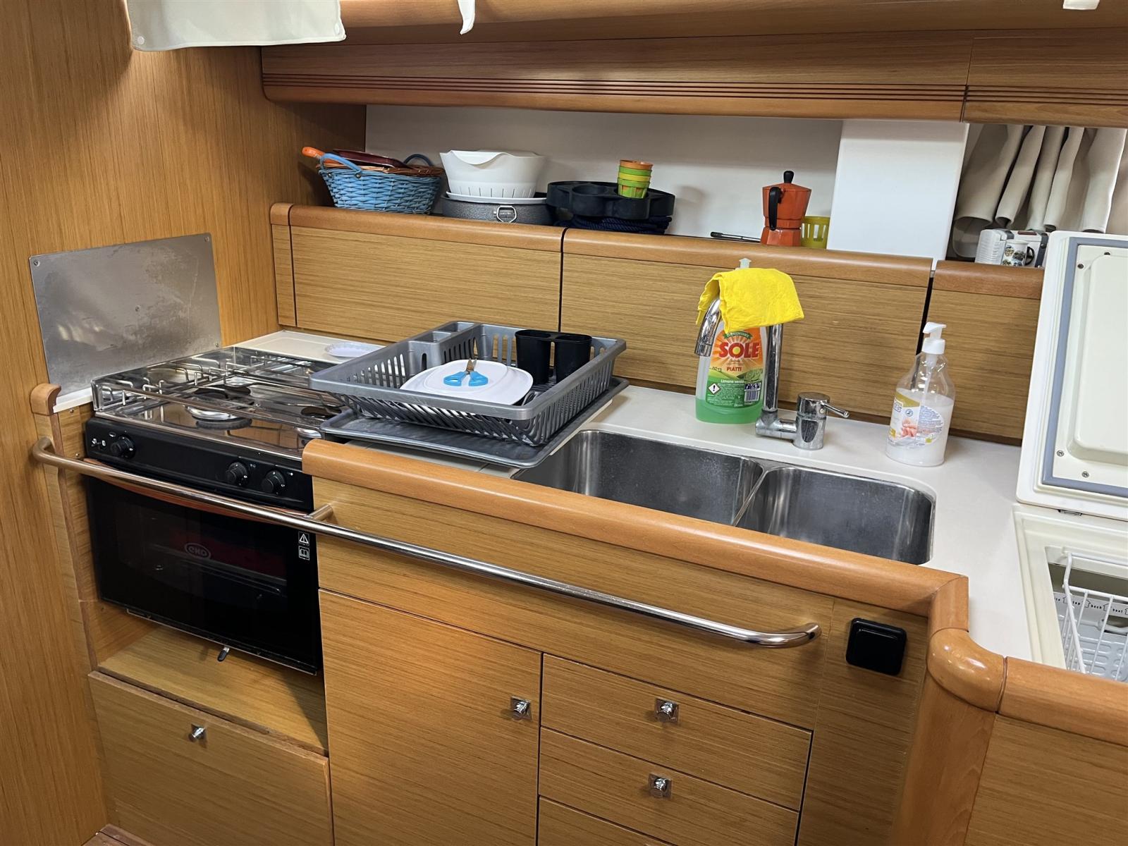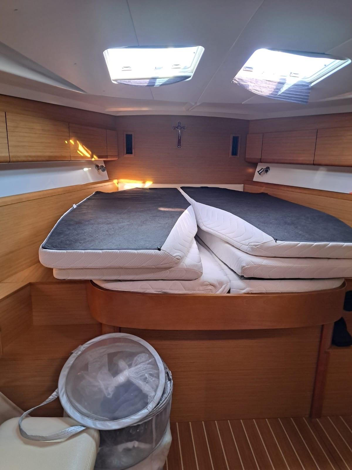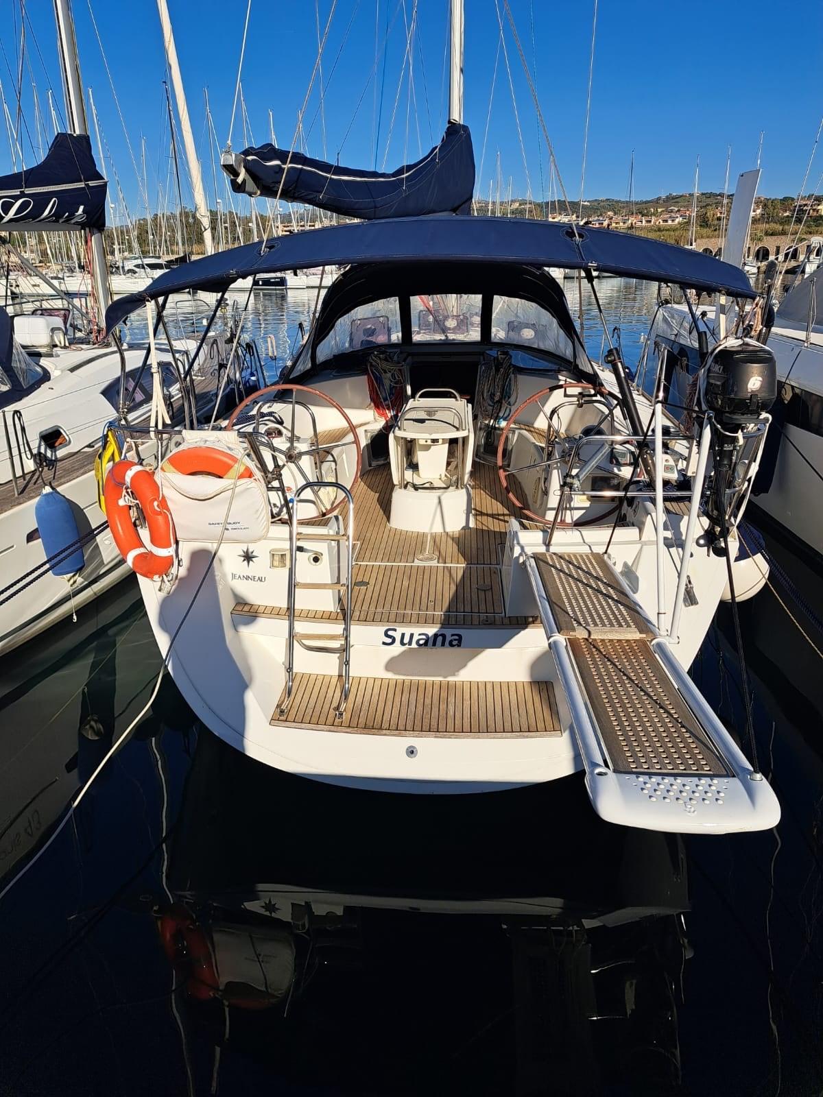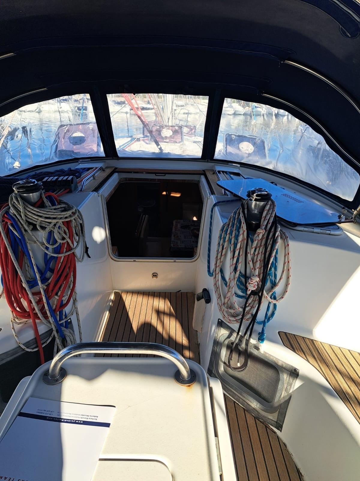 Eau sous pression, 3 Batteries, Douche de cockpit, Double barre à roue, Passerelle, Plateforme arrière, Cockpit en teck, Prise de quai, Guindeau électrique, Gréement monotoron, Echelle de bain, table de cockpit, 4 Winch.