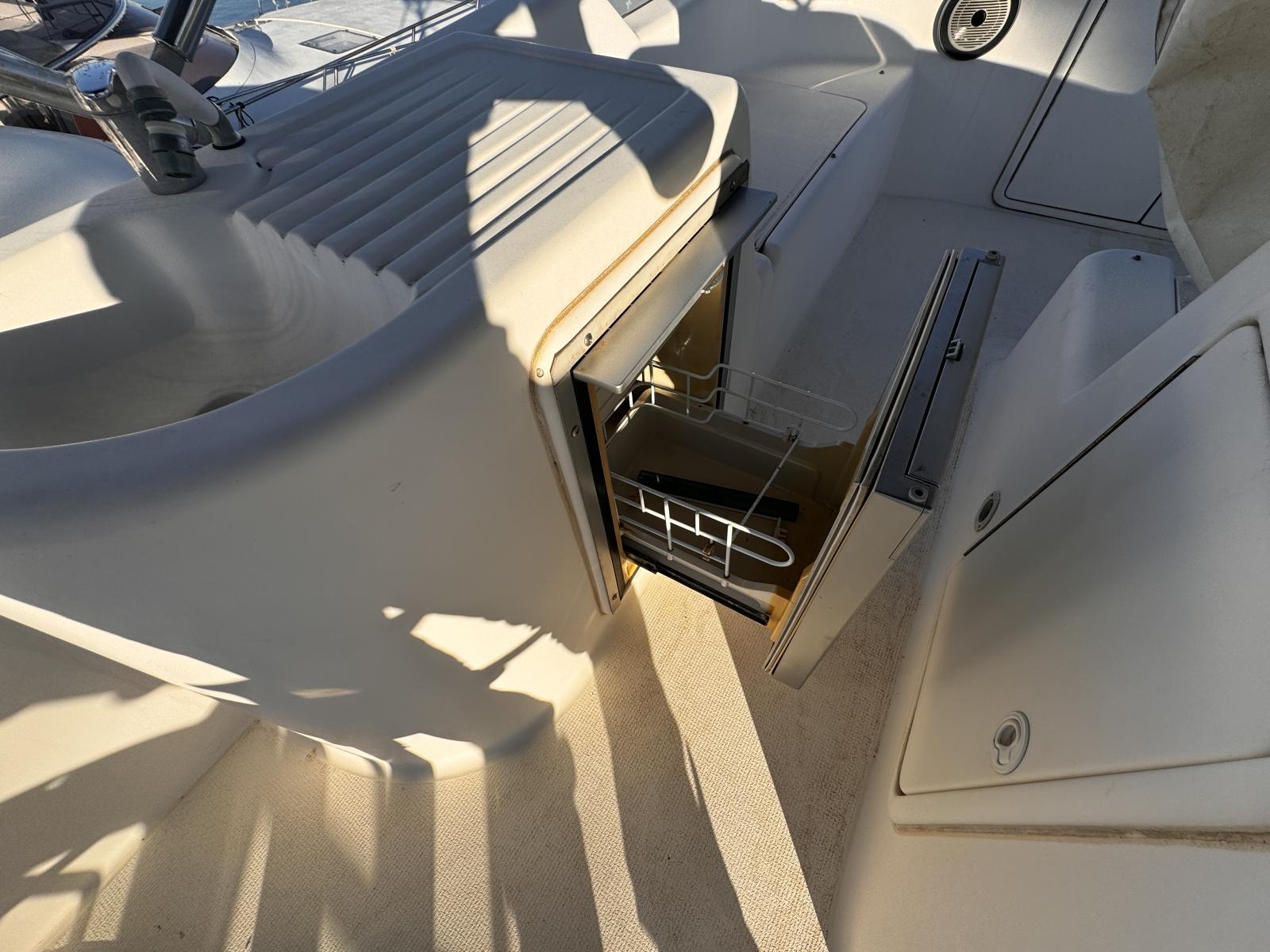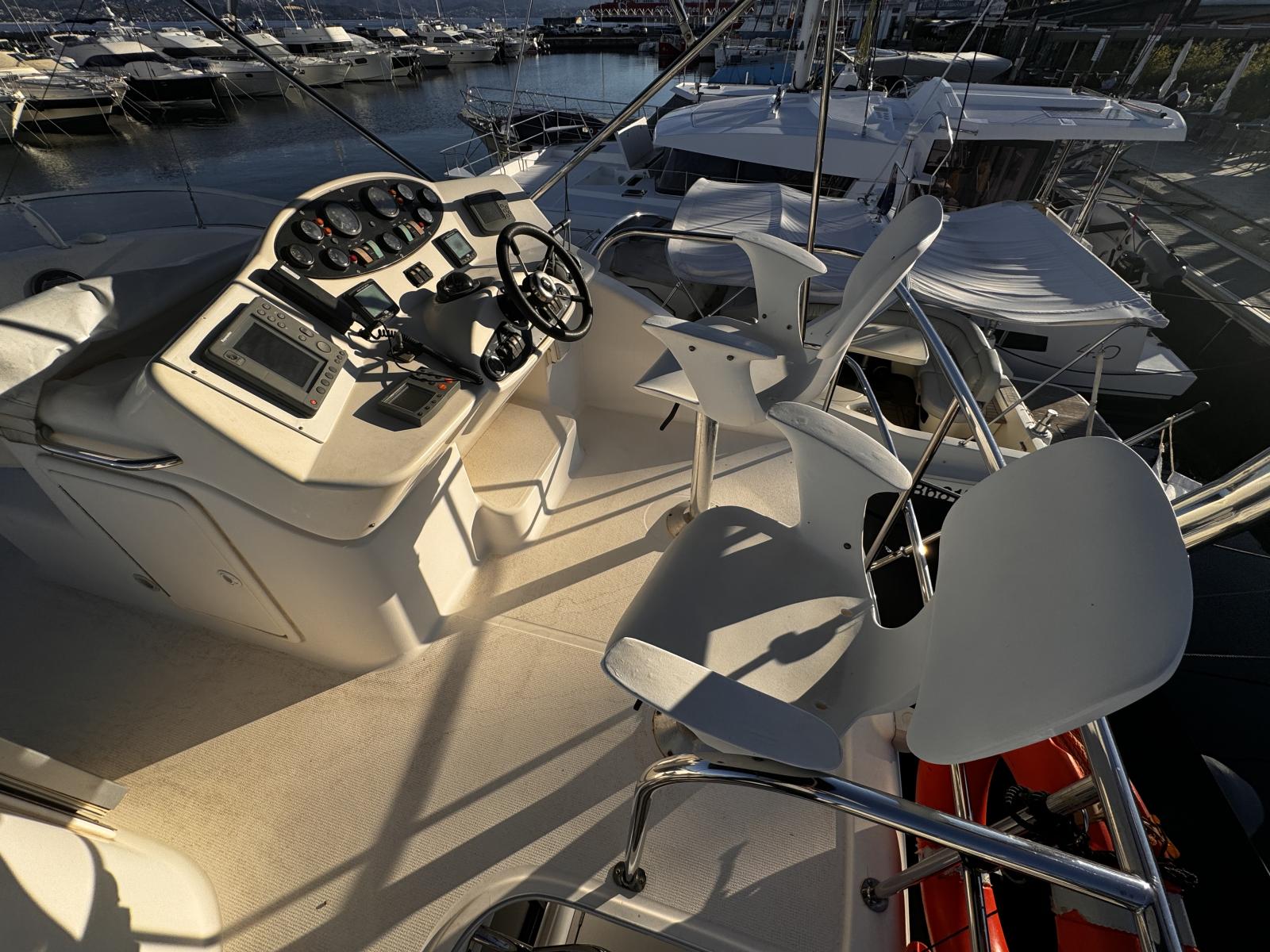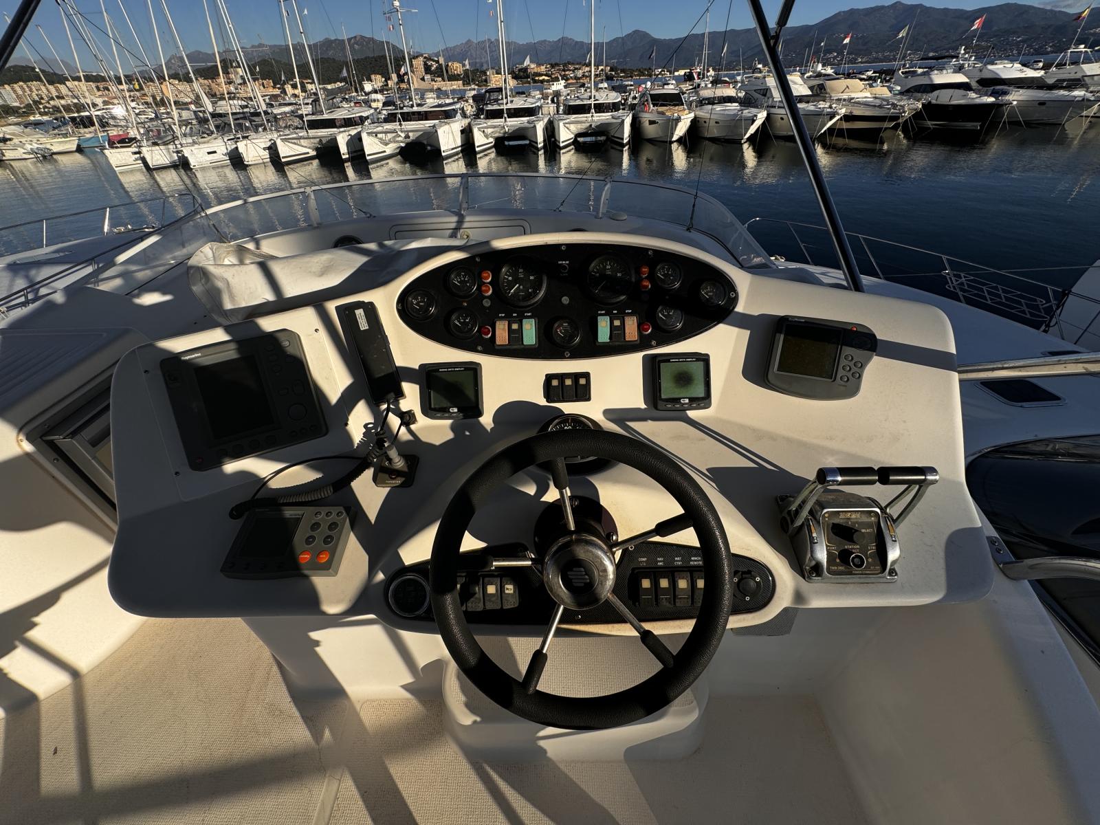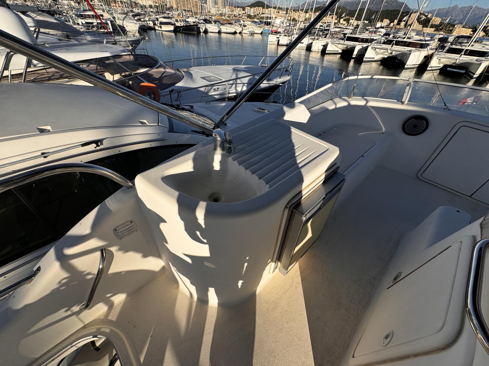 Équipé d’options haut de gamme telles qu’un radar, un pilote automatique, un propulseur d’étrave pour faciliter les manœuvres, une passerelle hydraulique pour un accès aisé à bord, ainsi que des tauds de soleil, de pare-brise et de console.