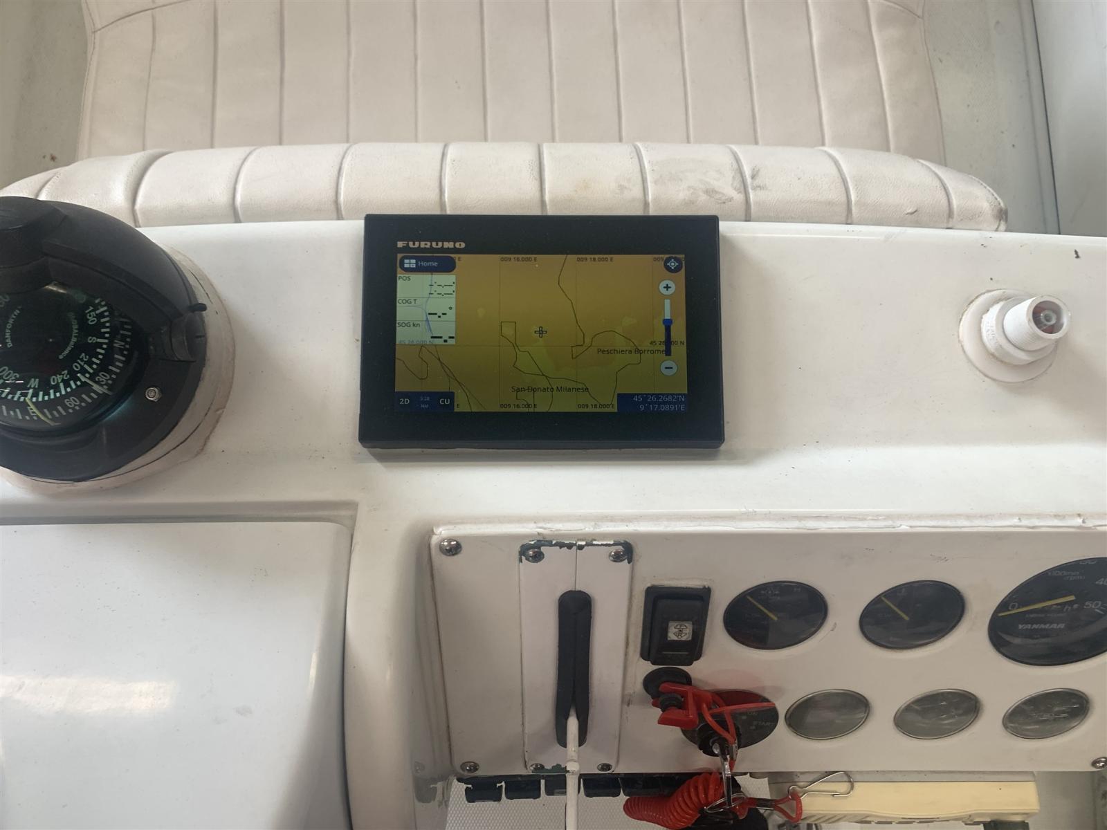 4 boulons à œil ajoutés pour la suspension, bande de protection de quille, lumières de courtoisie de cockpit, plate-forme en teck, crochet central, ski nautique, réservoir d’eau avec autoclave et douche, bornes escamotables, échelle, feux de navigation, boussole, traceur GPS Furuno, VHF Cobra, double batterie, direction hydraulique, moteur diesel Yanmar 4JH3-DTE 120 CV Castoldi 05 transmission jet d’eau.