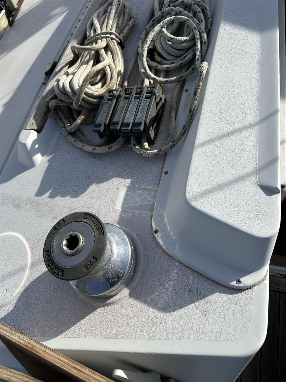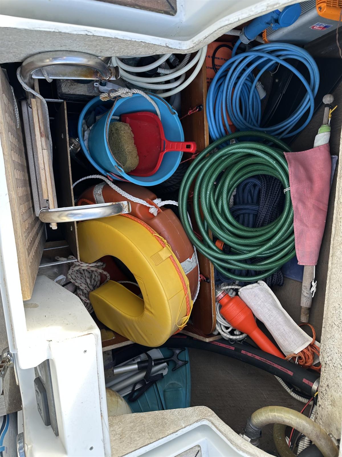 Alarme moteur, Ancre (CQR), Eau sous pression, Radeau de sauvetage (Da revisionare 8 pax), 3 Batteries (2 nuove 1 funziona vecchia), Câble d’alimentation à quai, Douche de cockpit, Moteur d'annexe (HONDA 2 va tagliandato), 2 Panneau solaire (SOLBIAN), 8 Défenses (Compreso 2 a palla), Passerelle, Plateforme arrière, Pompe de cale manuelle, Cockpit en teck (CON CARABOTTINO), Prise de quai, Onduleur, Guindeau électrique, Gréement monotoron (RIFATTO 2018), Echelle de bain, Chaise support HB, Annexe (ZODIAC), 5 Winch (2 PRIMARI, 2 X DRIZZE , 1 ALL’ALBERO).