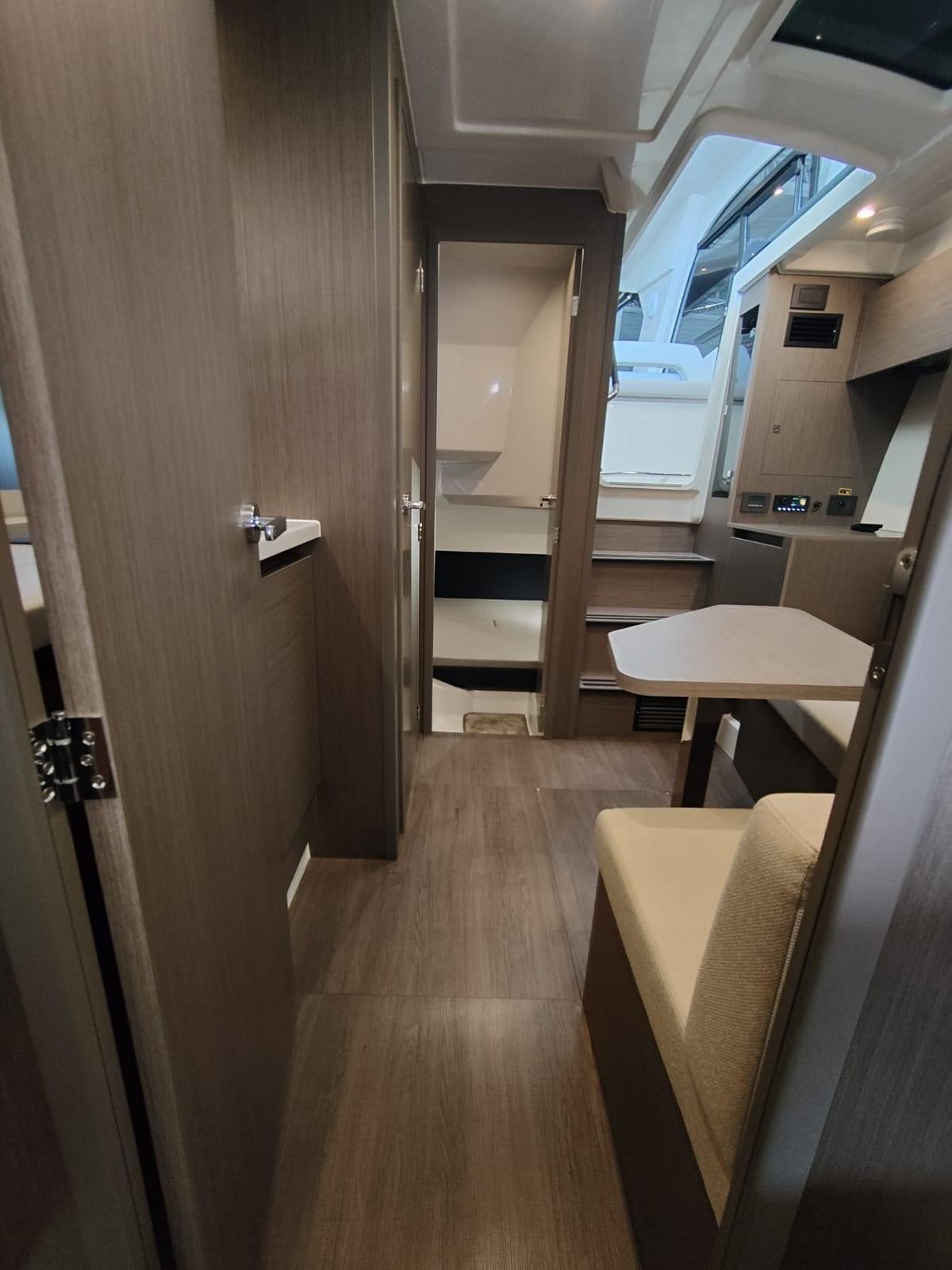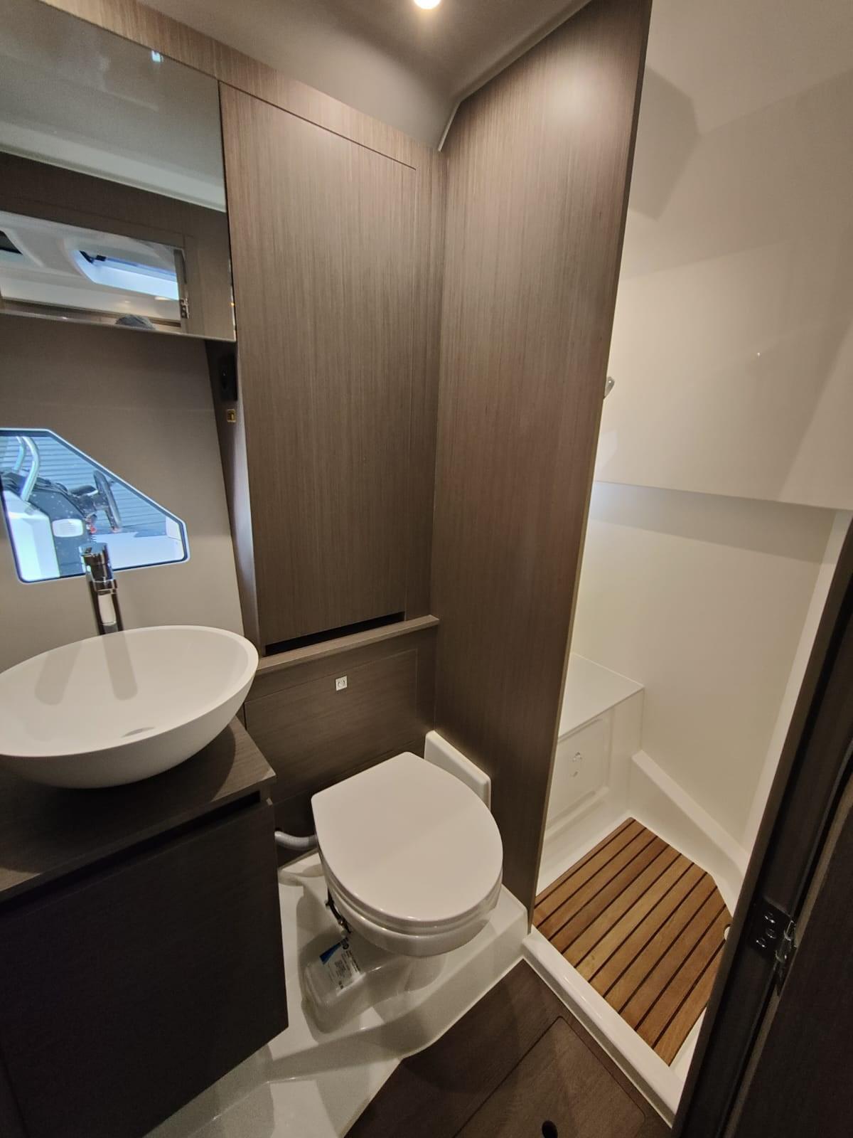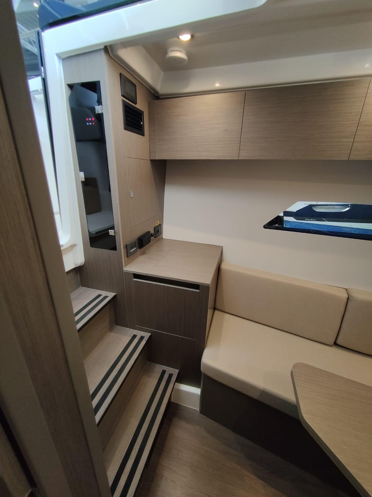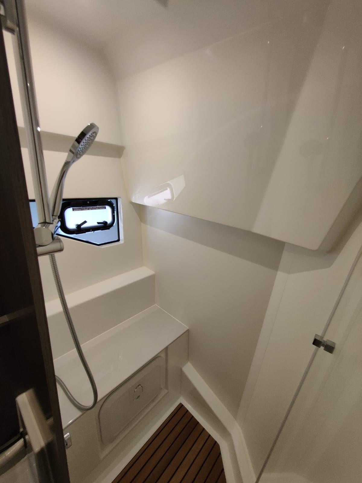 Alarme moteur, Alarme de pompe de cale, Ouverture du compartiment moteur électrique, Passavant en teck, Douche de cockpit, Flaps électriques, Hard top, Extincteur(s) fixe(s), Lavabo dans le cockpit, Éclairage de courtoisie, Spots sous-marins, Porte latérale, Cockpit en teck, Prise de quai, Connexion eau sous pression à quai, Guindeau électrique, Echelle de bain, Corne.