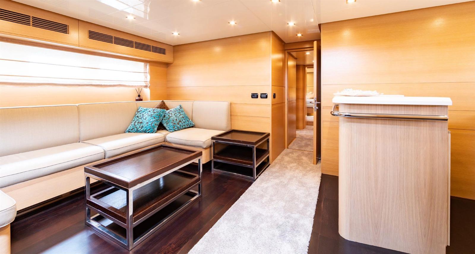 - Nouveau piano-bar tribord dans la dînette avec réfrigérateur, congélateur, machine à glaçons, évier