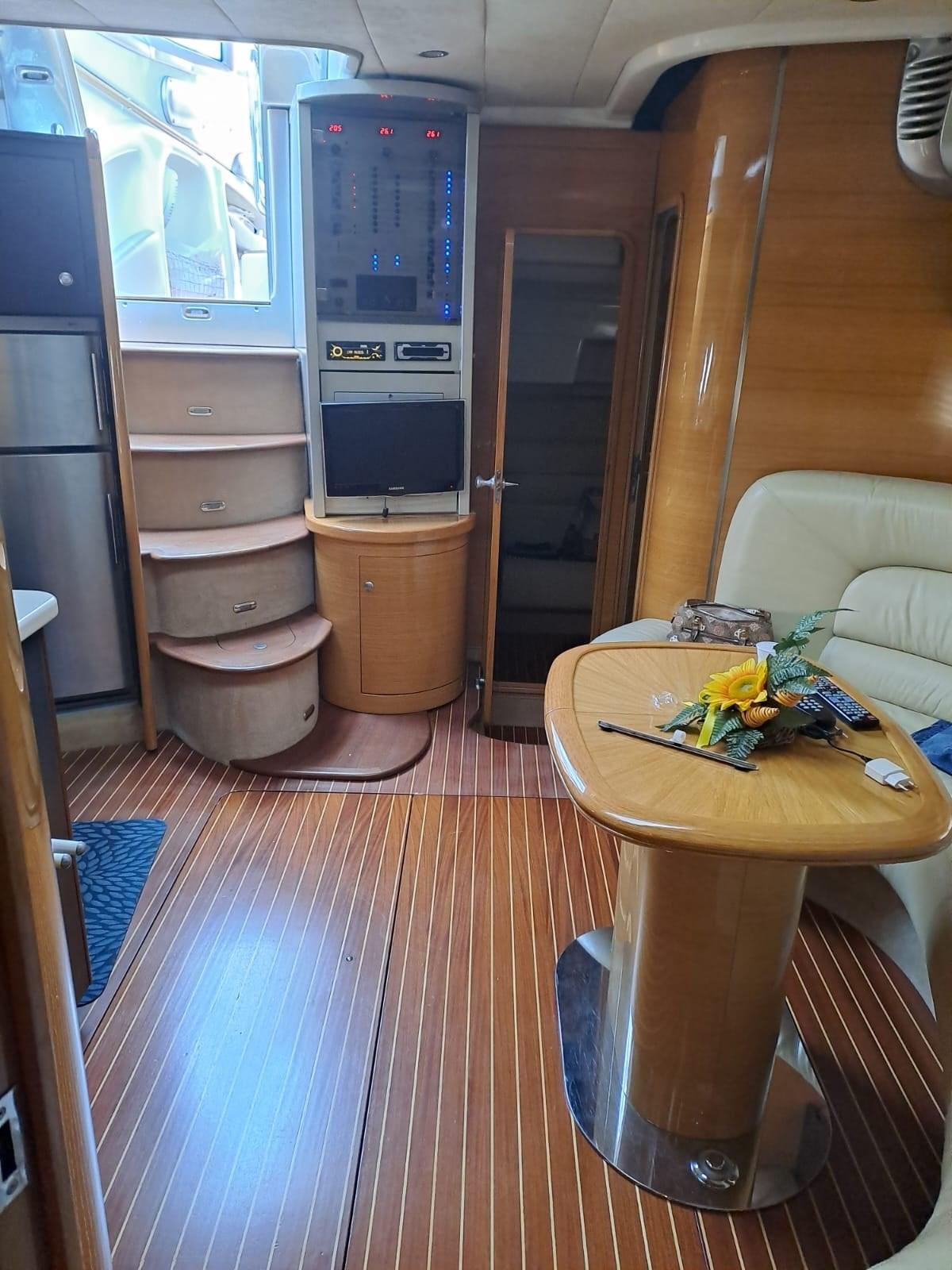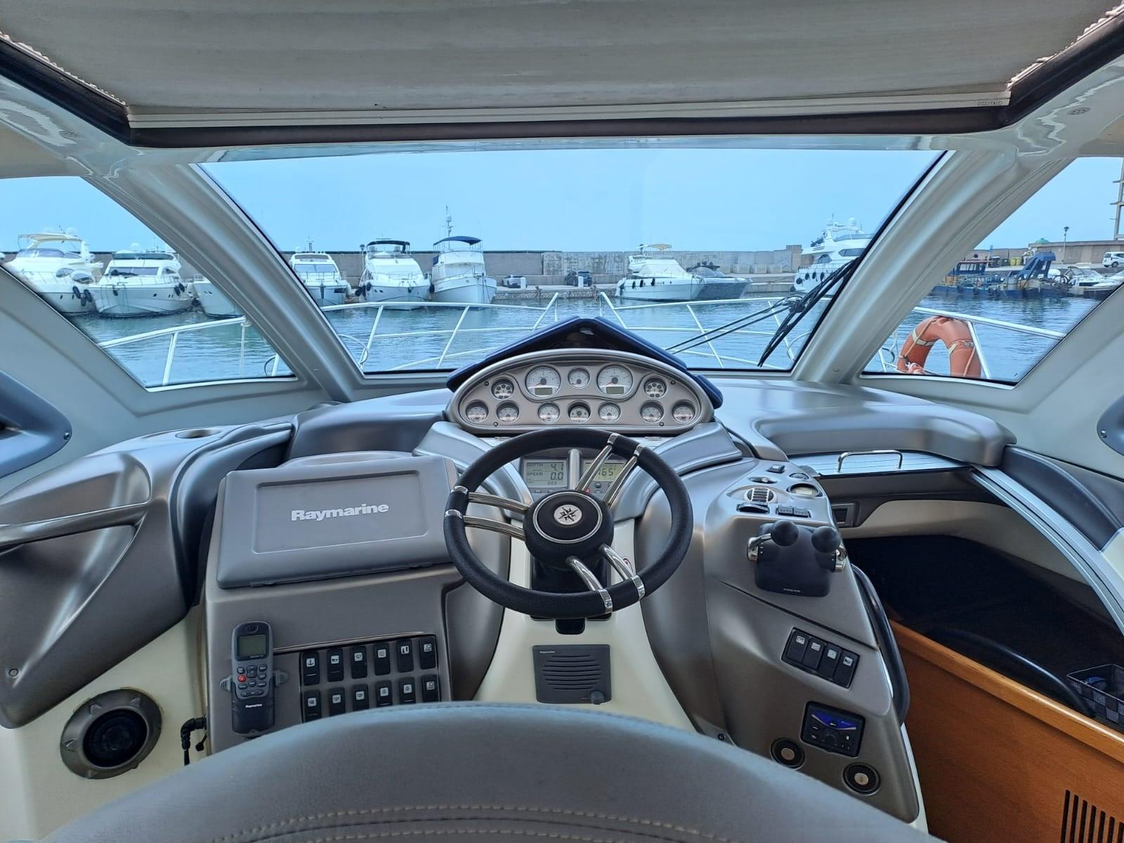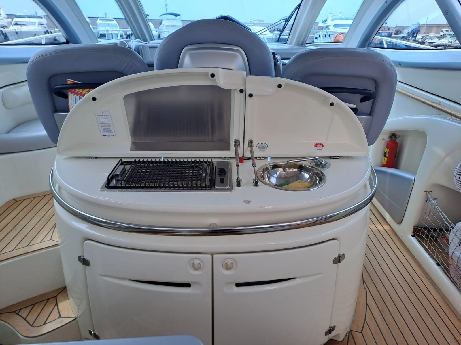 Alarme moteur, Eau sous pression, Passavant en teck, Couleur spéciale (blu), Douche de cockpit, Phare de poursuite, Flaps hydrauliques, Hard top (elettrico), Indicateurs de flaps, Lavabo dans le cockpit, Éclairage de courtoisie, Jet-ski (Yamaha GP1300), Passerelle (besenzoni), Plateforme arrière, Pompe de cale automatique, Porte latérale, Cockpit en teck, Prise de quai, Connexion eau sous pression à quai, Guindeau électrique, Echelle de bain, table de cockpit, Corne, 2 Winch électrique arrière.