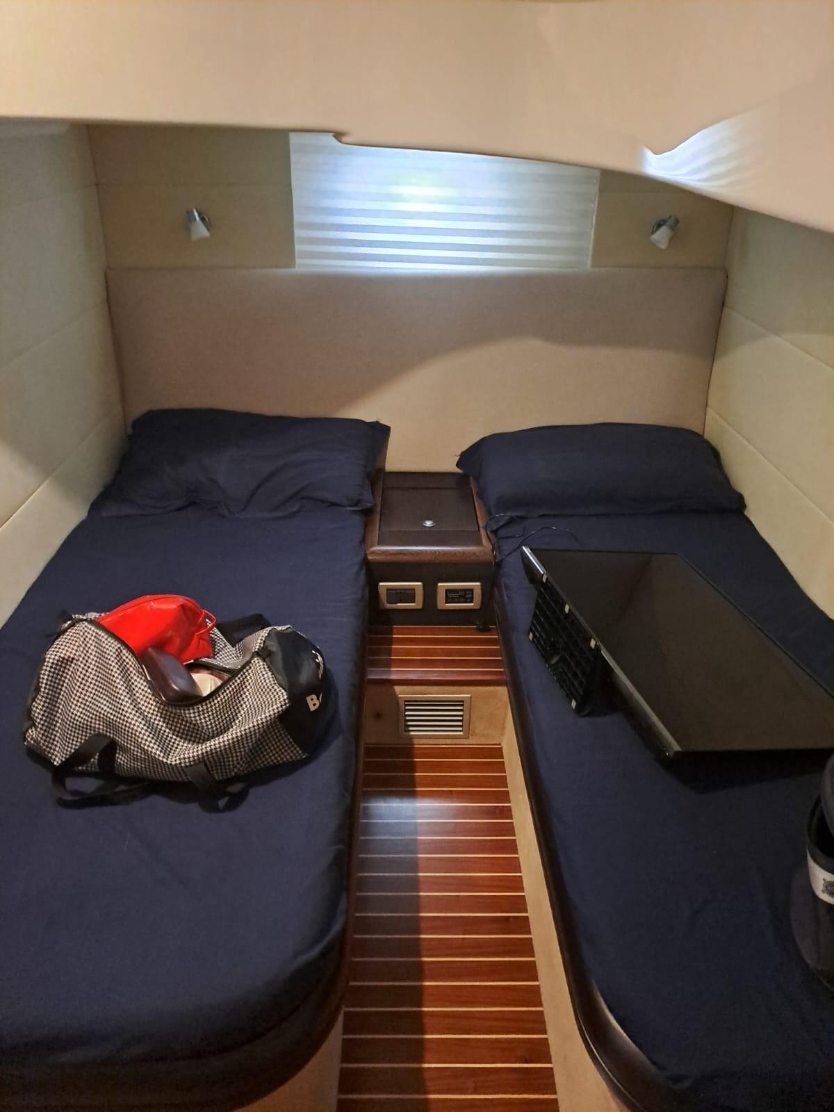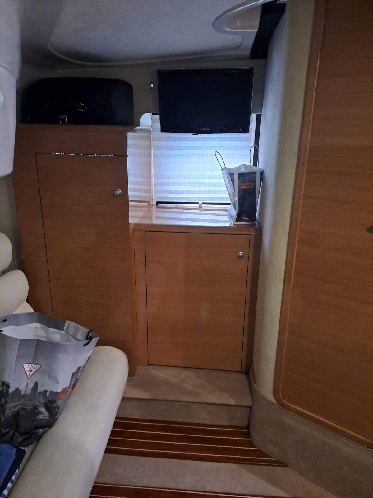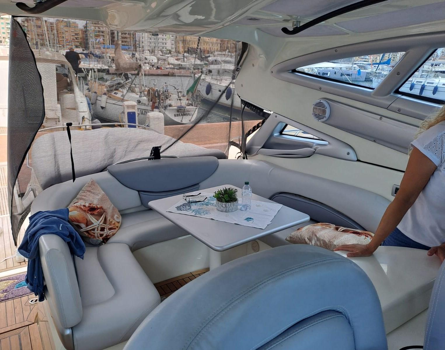 Alarme moteur, Eau sous pression, Passavant en teck, Couleur spéciale (blu), Douche de cockpit, Phare de poursuite, Flaps hydrauliques, Hard top (elettrico), Indicateurs de flaps, Lavabo dans le cockpit, Éclairage de courtoisie, Jet-ski (Yamaha GP1300), Passerelle (besenzoni), Plateforme arrière, Pompe de cale automatique, Porte latérale, Cockpit en teck, Prise de quai, Connexion eau sous pression à quai, Guindeau électrique, Echelle de bain, table de cockpit, Corne, 2 Winch électrique arrière.