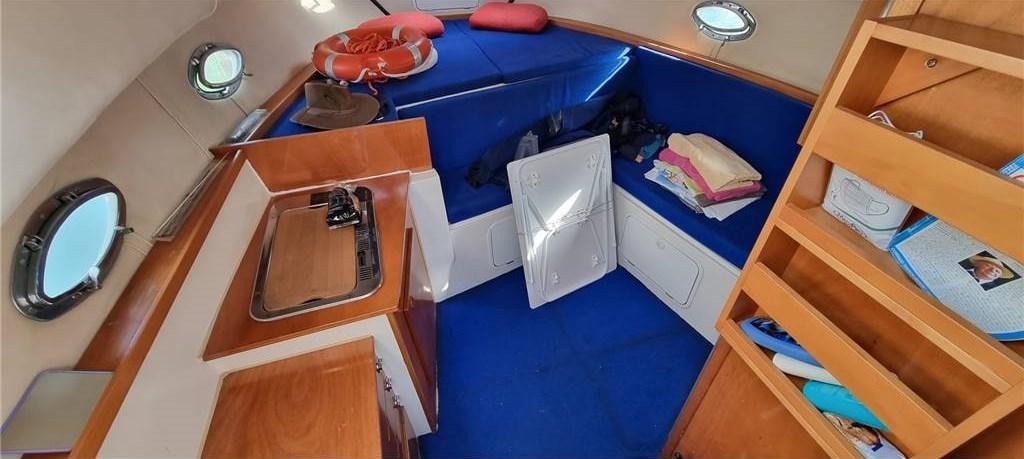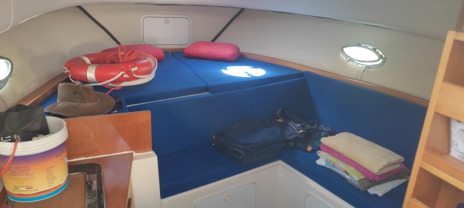 Alarme gaz, Eau sous pression, 3 Batteries (nuove 2022), Passavant en teck (sintetico), Flaps électriques, Extincteur(s) fixe(s), Indicateurs de flaps, Lavabo dans le cockpit, Éclairage de courtoisie, Plateforme arrière, Pompe de cale automatique, Porte latérale, Cockpit en teck (sintetico), Prise de quai, Guindeau électrique.