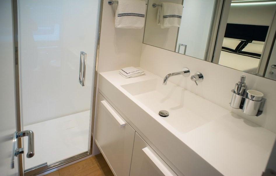 Alarme gaz, Alarme moteur, Alarme de pompe de cale, Eau sous pression, 14 Batteries, Passavant en teck, Taud de grand voile, Chargeur de batterie (Mastervolt), 2 Douche de cockpit, Phare de poursuite, Flaps électriques, Garage à annexe, Extincteur(s) fixe(s), Compresseur de plongée, Indicateurs de flaps, Lavage de chaine, Éclairage de courtoisie, Spots sous-marins, Passerelle, Plateforme arrière, Pompe de cale automatique, Pompe de cale manuelle, Porte latérale, Porte latérale, Cockpit en teck, Prise de quai, Connexion eau sous pression à quai, Onduleur, Guindeau électrique, Echelle de bain, Stabilisateurs, table de cockpit, Corne, T-Top, Pont en teck, 3 Winch, Winch électrique avant.