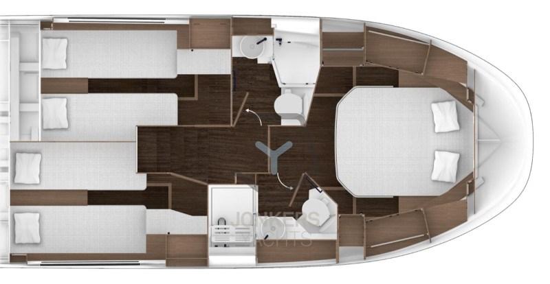 Avec de grandes fenêtres lumineuses et une vue panoramique sur l’eau, la vie est douce à bord de ce vaisseau amiral, rehaussée par une sélection raffinée et contemporaine de matériaux. Prenez place à la barre et profitez des toutes dernières technologies, que l’on retrouve sur les plus grands bateaux, pour une utilisation facile. La porte latérale tribord offre un accès facile et facilite les manœuvres pour une croisière sans souci. Mettez les voiles et trouvez votre place confortable dans l’une des trois cabines, pour un moment de repos sur l’eau à chaque arrêt de votre croisière !