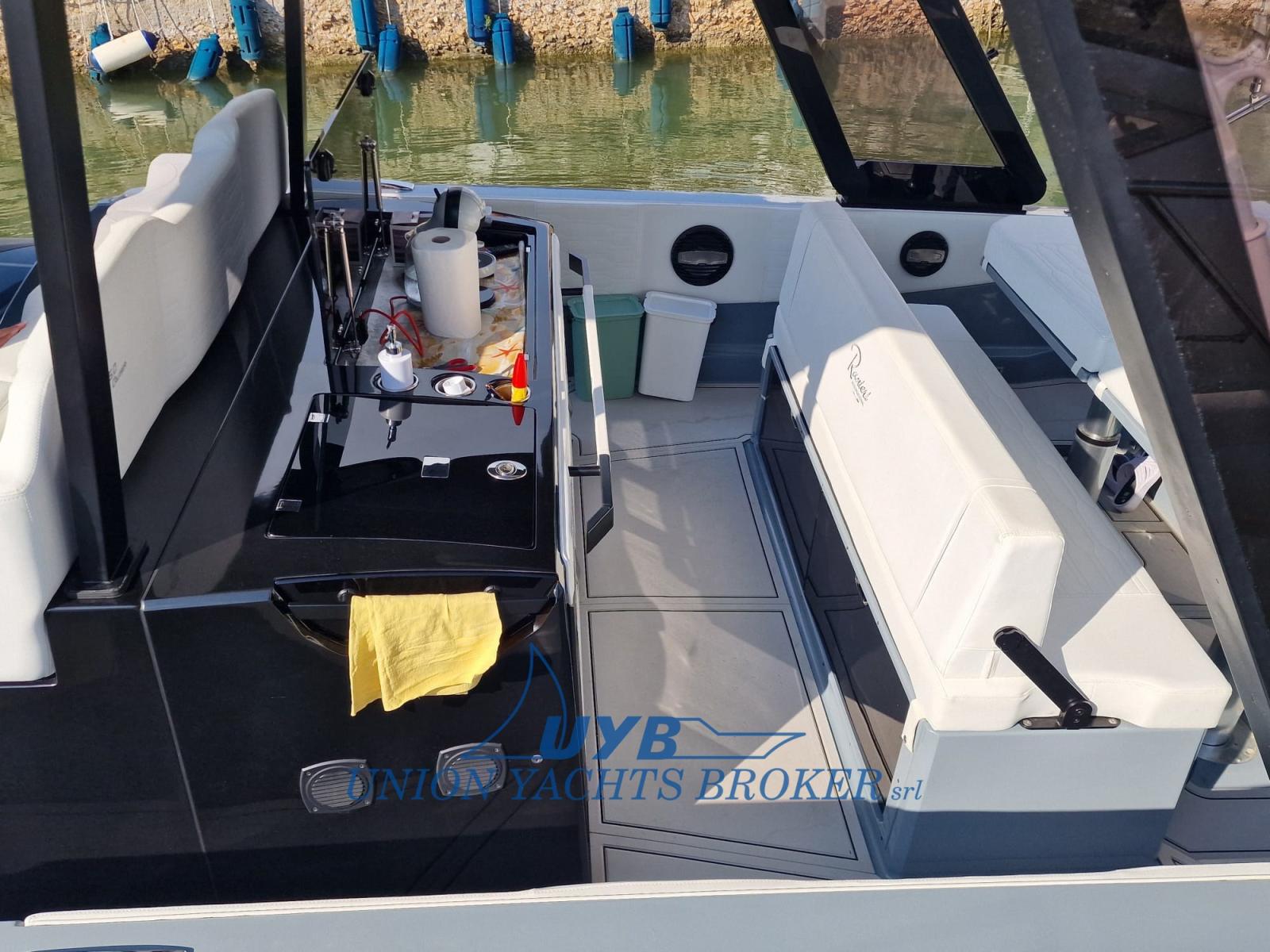 Alarme moteur, Alarme de pompe de cale, Ouverture du compartiment moteur électrique, Eau sous pression, Douche de cockpit, Pompe de cale automatique, Prise de quai, Guindeau électrique, Echelle de bain, table de cockpit, Corne, T-Top.