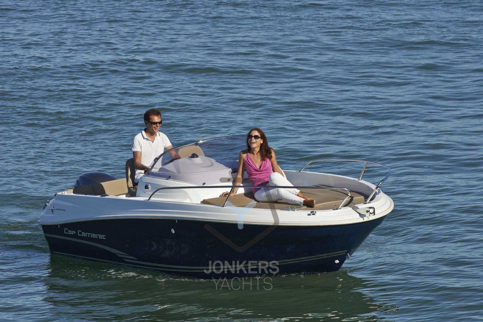 Le Cap Camarat 5.5 WA arbore des lignes fluides contemporaines. Avec sa coque Jeanneau effilée en forme de V, il fait preuve d’une excellente maniabilité et d’une tenue en mer pour un usage familial et d’un planage rapide pour le ski nautique.