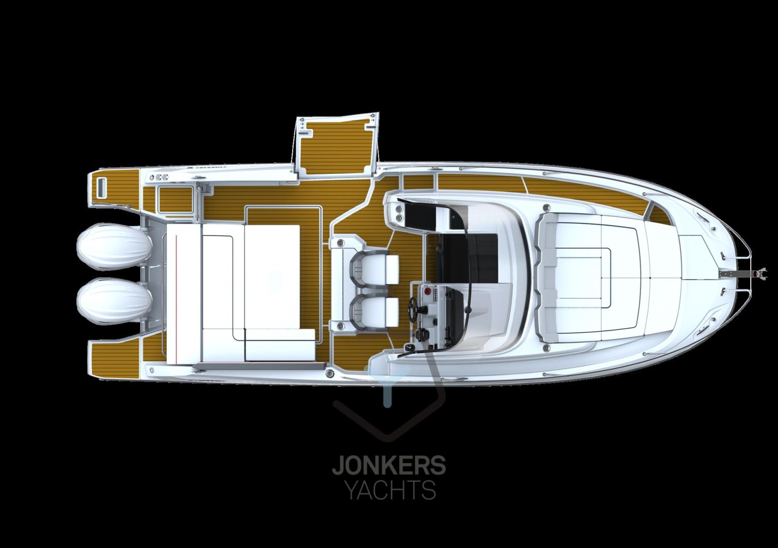 Le dossier rabattable des sièges arrière transforme le cockpit arrière en un immense bain de soleil en quelques secondes. Le pont latéral agrandit le cockpit et offre un accès sûr et facile à la mer pour une baignade rafraîchissante.