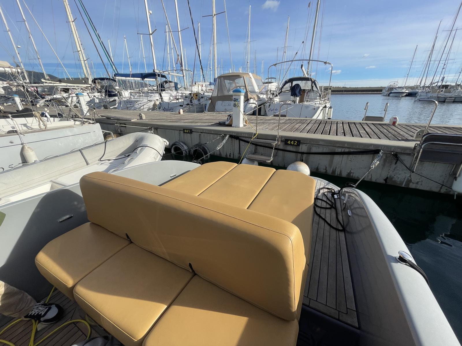 Couleur de sellerie (siège de barre, cockpit avant et bain de soleil arrière) Pécan / Pecan upholstery color