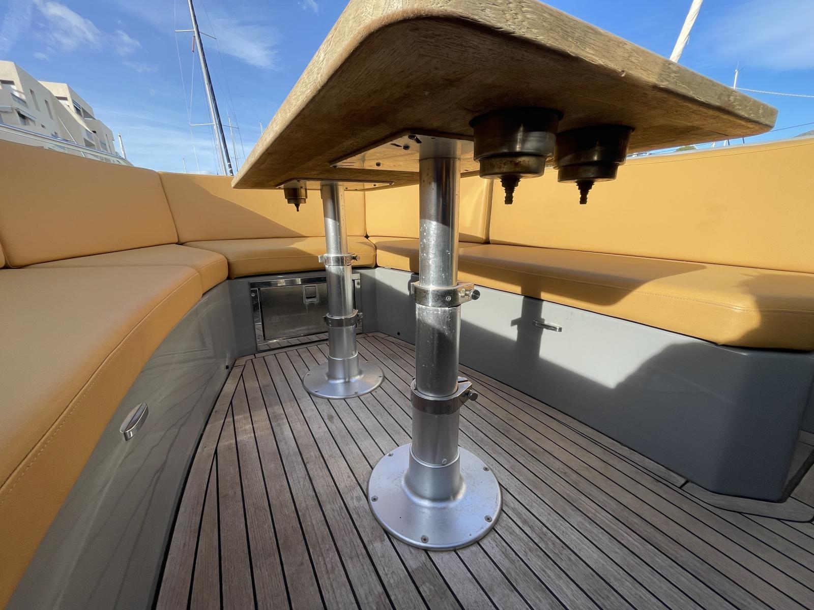 Table de cockpit avant convertible en bain de soleil incluant porte-gobelets / Convertible cockpit table including cup holders