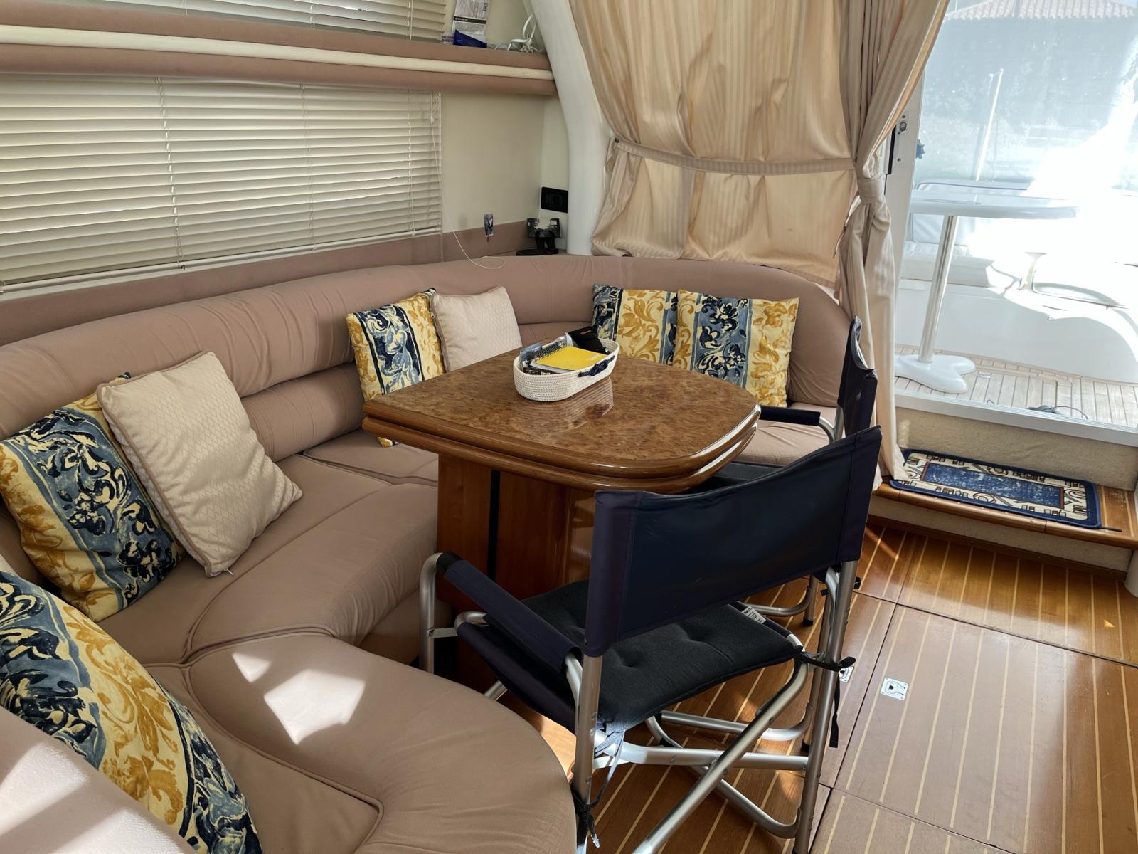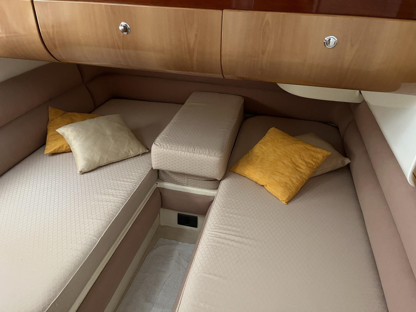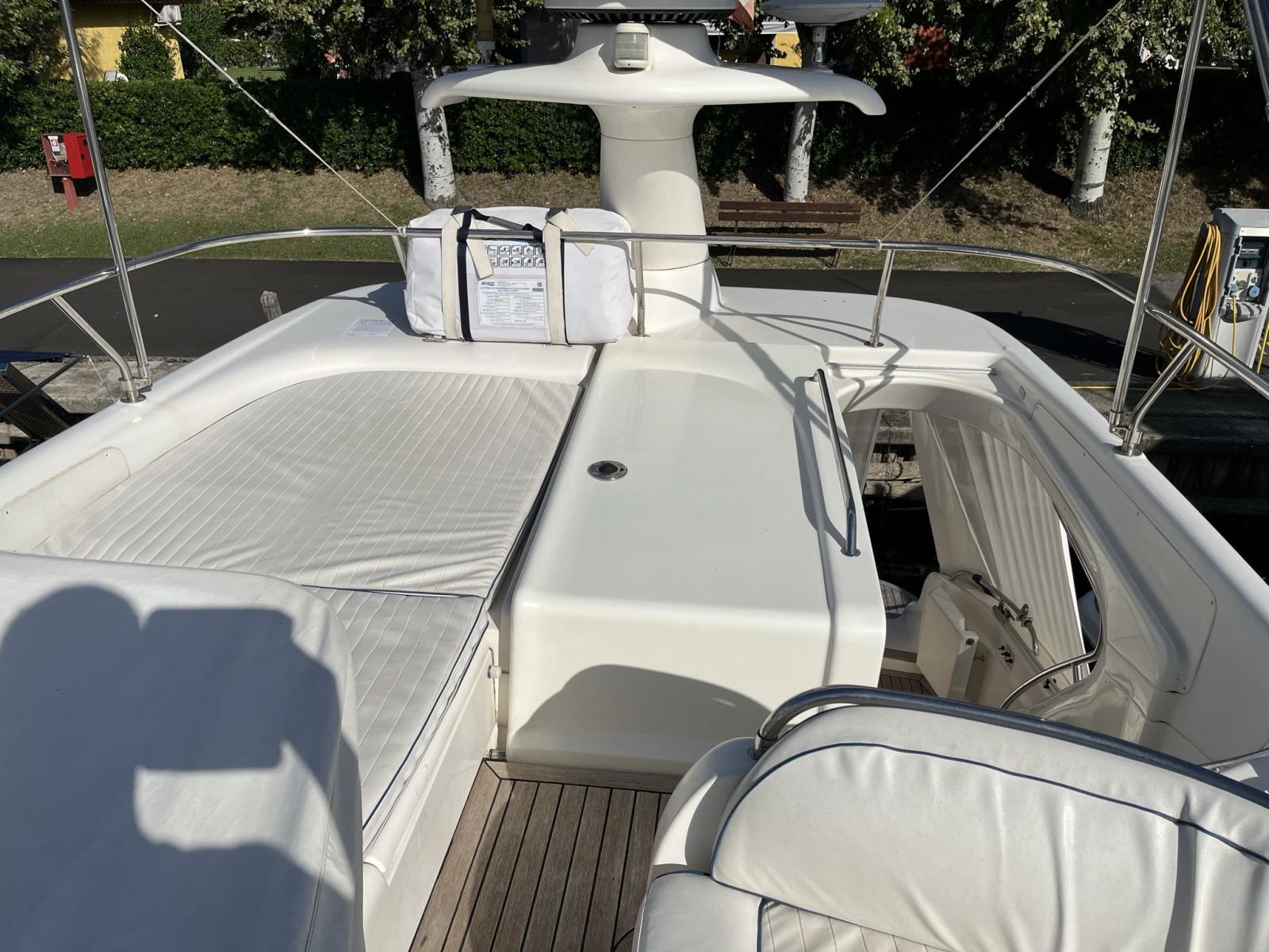 Sealine F44 de 1999 refit 2024, peinture rouf, cockpit et coussins extérieurs neufs. Deux cabines, la cabine principale et la cabine invités avec deux lits plats, deux salles de bains. Grand salon avec canapés pouvant être convertis en lit double, cuisine entièrement équipée. Entretien régulier Volvo Penta. Nouvelles bagues 2021 joints volvo . service du moteur. Teck massif sur le pont arrière, le cockpit et le flybridge. Instrumentation complète du tableau de bord : TRACEUR GPS LORENZ PANORAMIC 8 SUN, VHF, AUTOHELM ST6000 AUTOPILOT, AUTOHLEM SPEED, AUTOHELM DEEPT TRIM FLAP, COMPAS. HÉLICE D’ÉTRAVE. Instrumentation à la volée GPS TRACEUR LORENZ 7 , AUTOHELM ST6000, AUTOHELM SPEED, AUTOHELM DEEPT, TRIM, COMPASS. Chauffage, passerelle hydraulique, double réfrigérateur interne, four à gaz avec grill, cuisinière 3 feux. Certificat d’annotation de sécurité RINA récemment renouvelé valable jusqu’en 2026.
