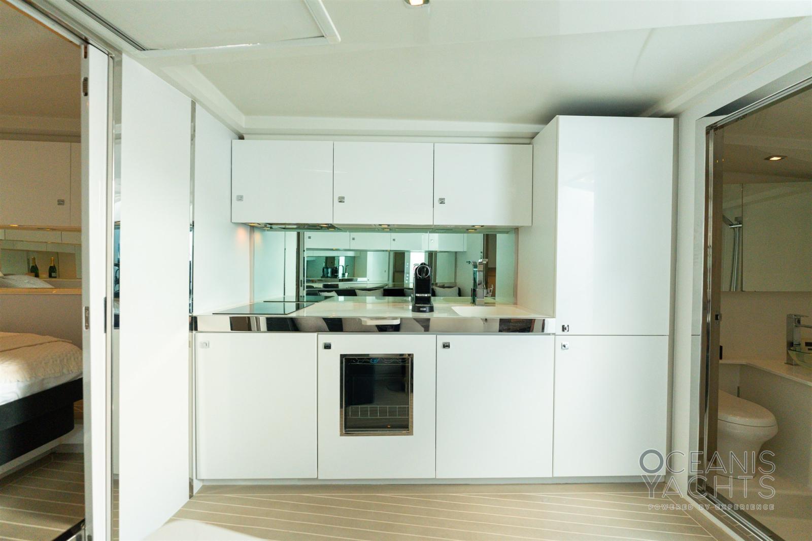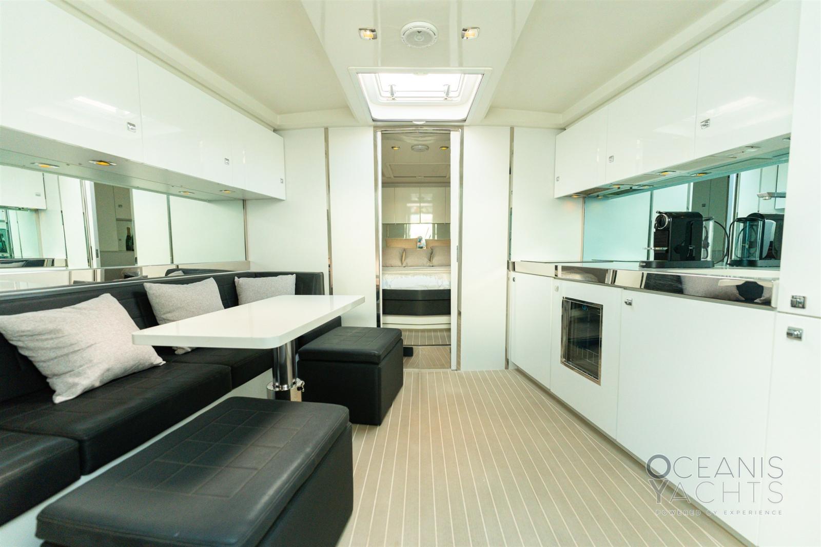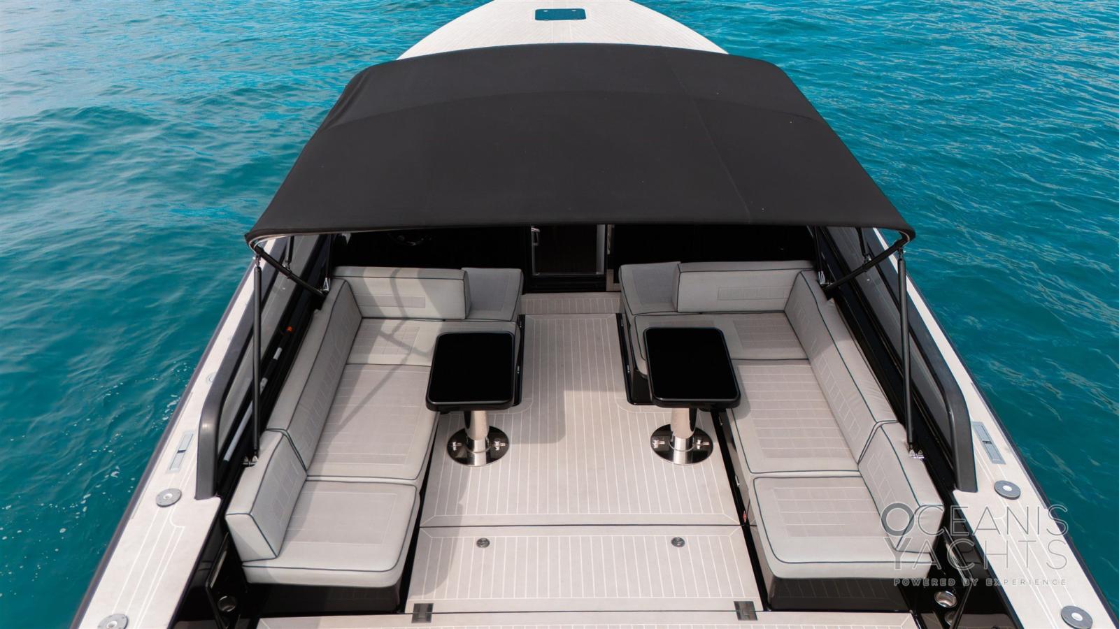 Alarme moteur, Douche de cockpit, Flaps électriques, Éclairage de courtoisie, Spots sous-marins, Prise de quai, Echelle de bain, table de cockpit, Corne.