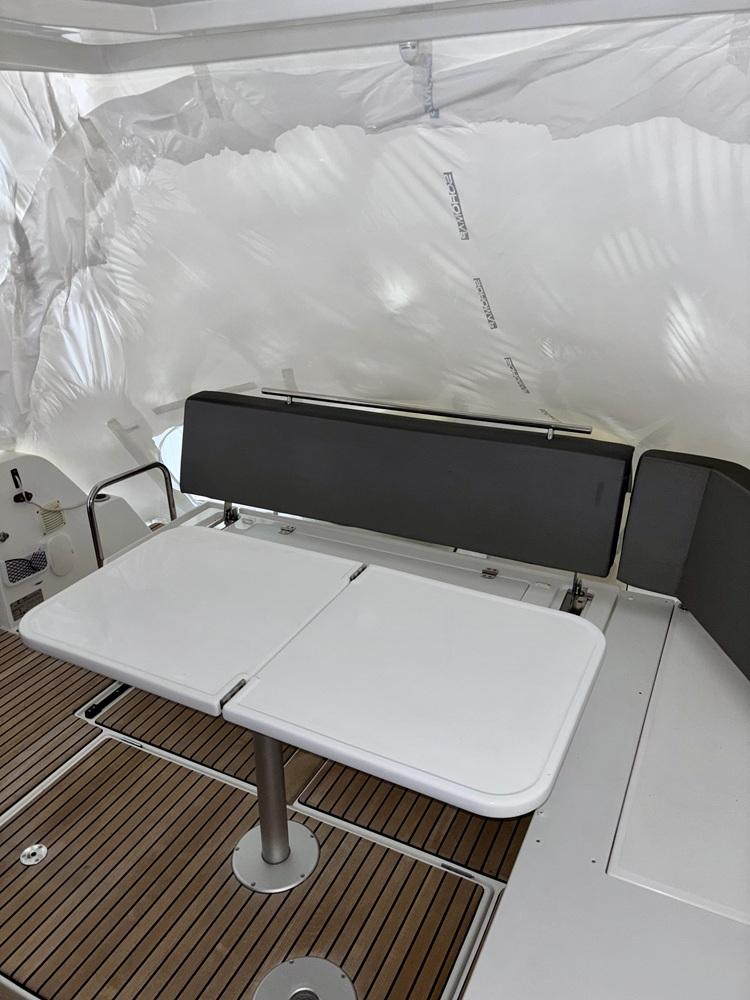 Teck dans le cockpit et passavant tribord et plateformes