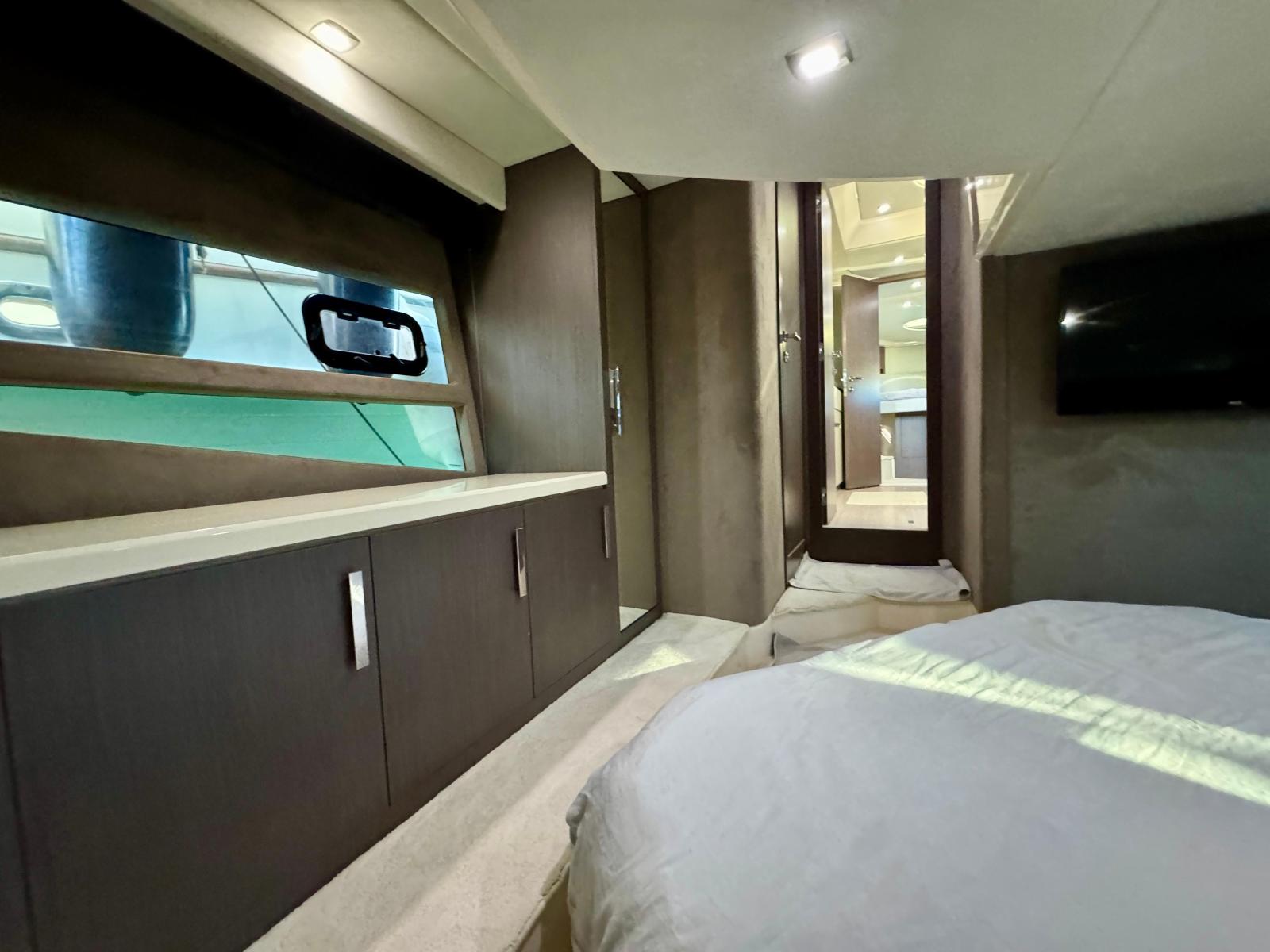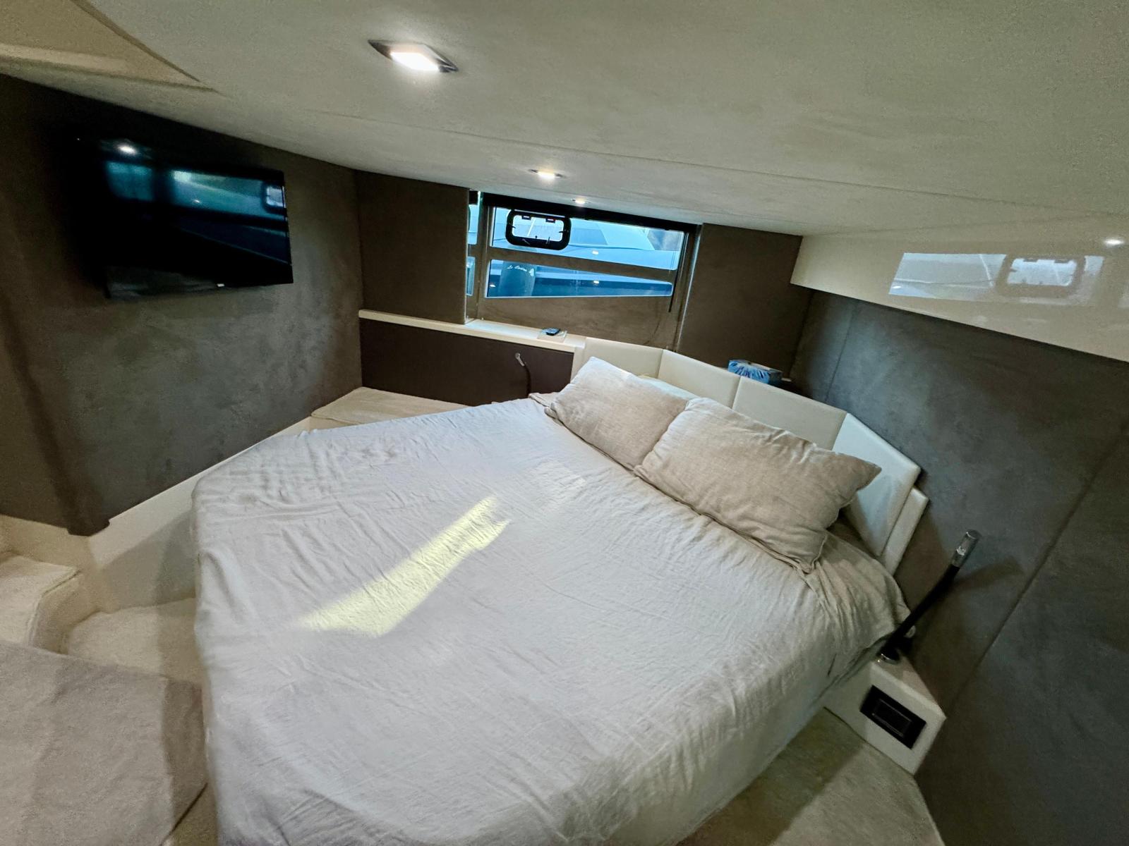 Description fournie par le constructeurDirect descendant of the C43, the C44 project originates from the desire to offer an even more comprehensive and comfortable version. With 2 VOLVO PENTA IPS 500 or 600 engines, the C44 has the same hull as the C43, widely hailed by the specialized international press for its suppleness and sea keeping qualities when it was launched in 2008. A new feature is the hydraulic bathing deck with a 600kg capacity, for accommodating and launching a 2,3m tender. The cockpit layout is available in two different styles: simple version with deck lounge, large sun deck and tender garage at the rear or the double version with two sofas in a L shape and a table comfortably seating 12 guests.