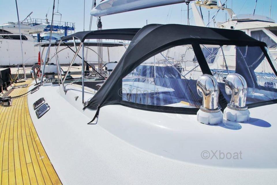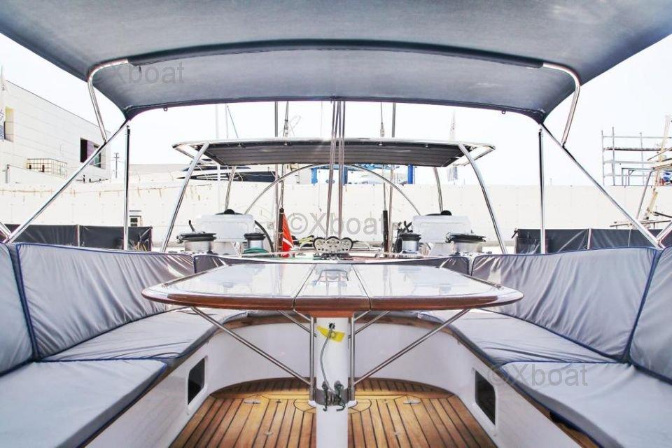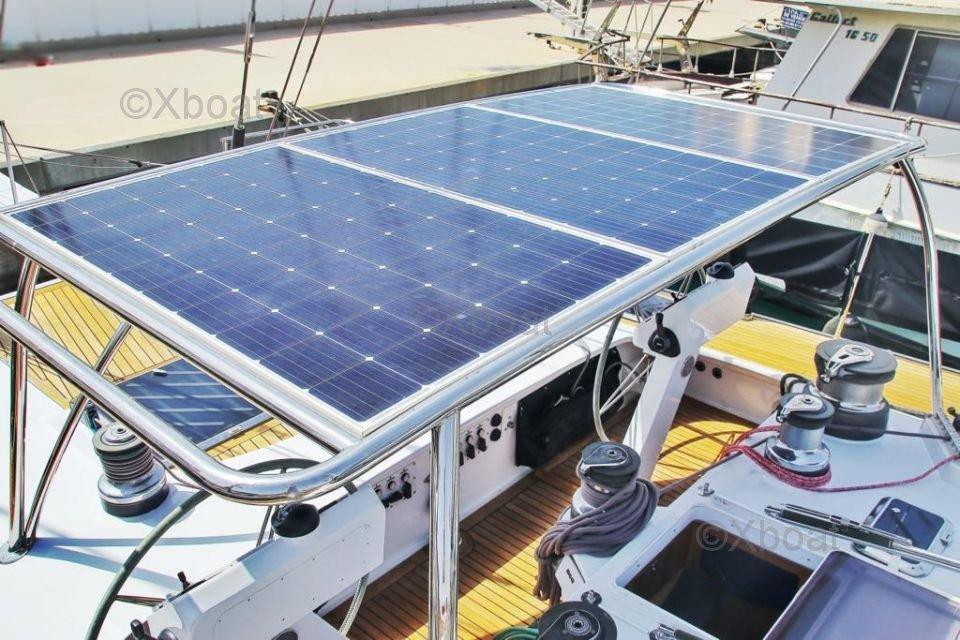 Les biminis, housses de winch, housse de barres à roue, housse de grand-voile et toute la sellerie ont été mises à neuf dans un matériau de très haute qualité de couleur noire en 2020.