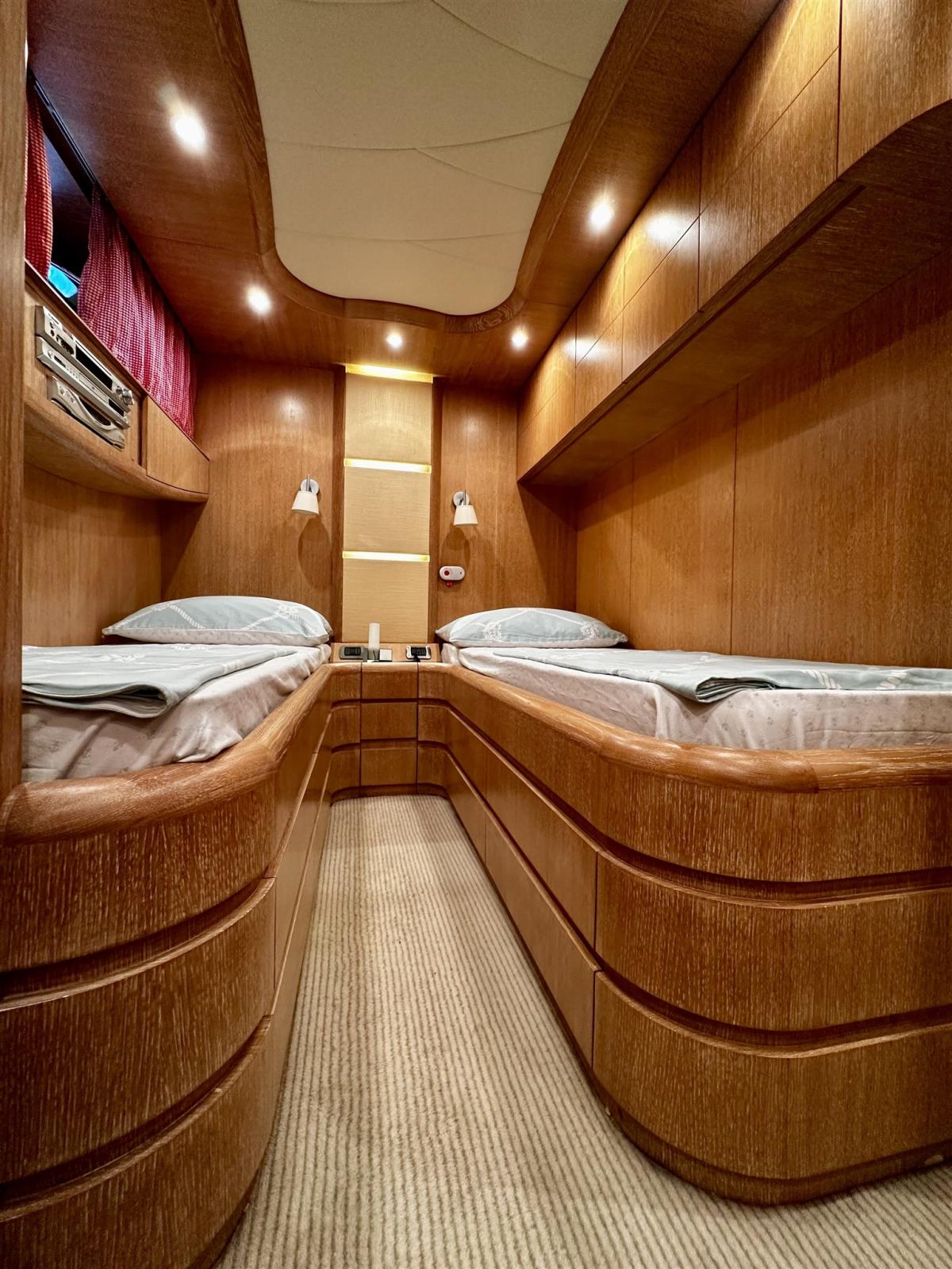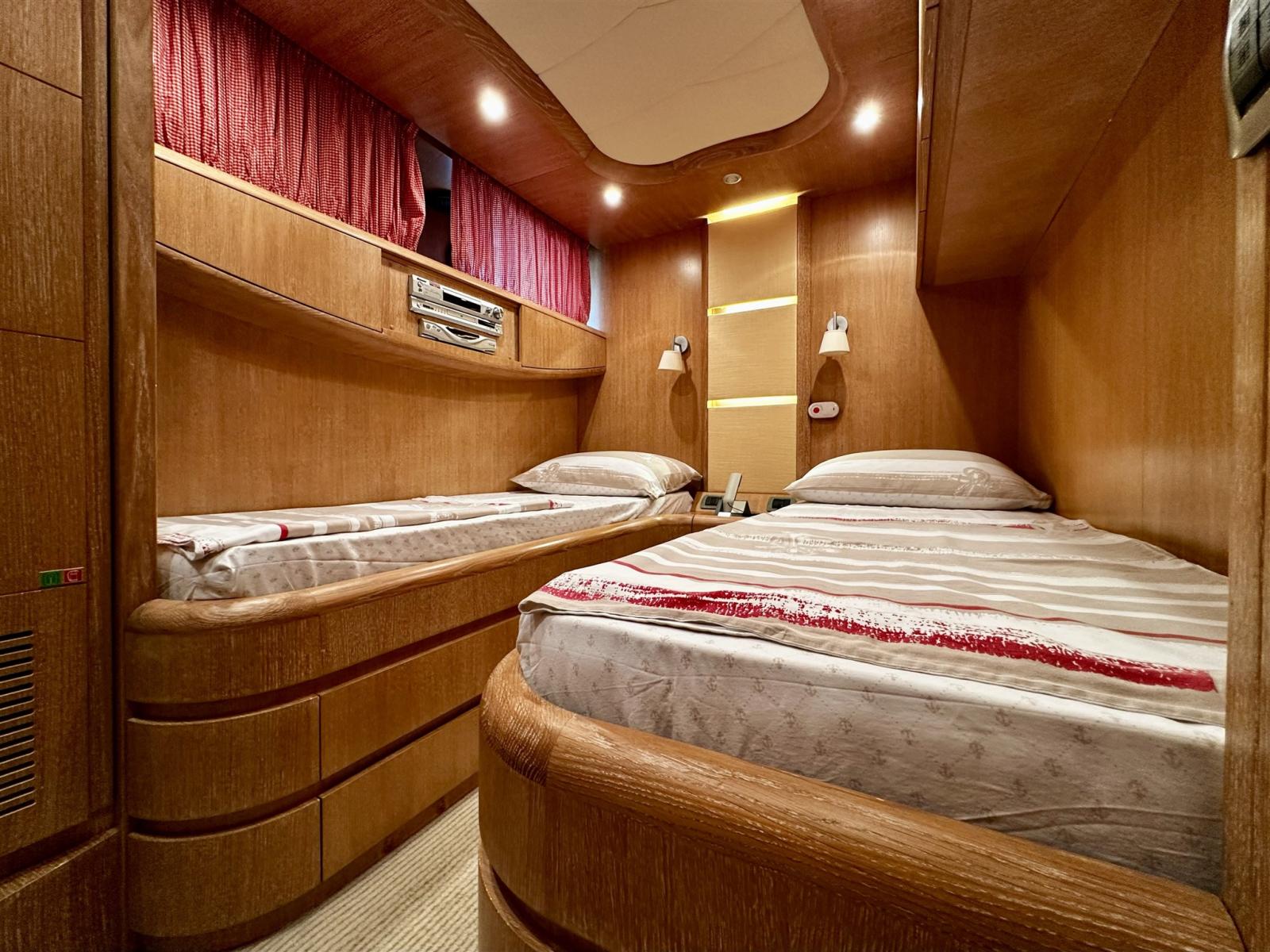 Ballon d'eau chaude, Dessalinisateur (Idromar 120 l/h), Prises interieures 12v, Prises interieures 220v, Réservoir d'eau noire, Interphone, 5 Toilettes électriques.