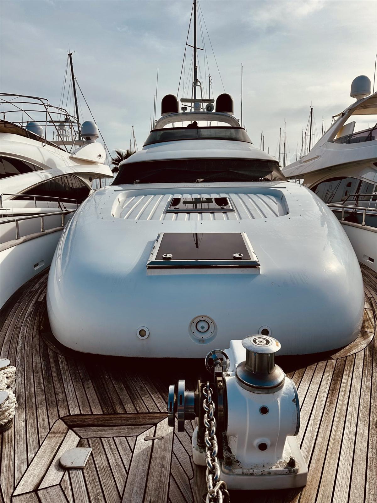 Alarme de pompe de cale, Eau sous pression, 2 Taquets pliants, Passavant en teck, Douche de cockpit, Flaps hydrauliques, Grue de flybridge, Extincteur(s) fixe(s), Compresseur de plongée, Indicateurs de flaps, Passerelle, Plateforme arrière, Pompe de cale automatique, Porte latérale, Porte latérale, Cockpit en teck, Onduleur, Rollbar, Guindeau électrique, Echelle de bain, table de cockpit, Corne, Winch électrique arrière, Winch électrique avant.