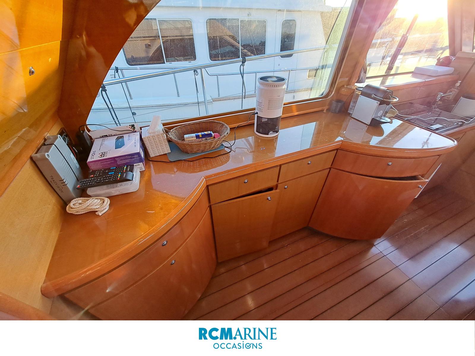 Beaucoup d'améliorations apportées en 2024 : pose d'un propulseur de poupe, électronique refité (pilote automatique, 2 écrans GPS, AIS, caméra arrière, radio Fusion, antenne TV satellite...), sellerie extérieure et autres équipements.