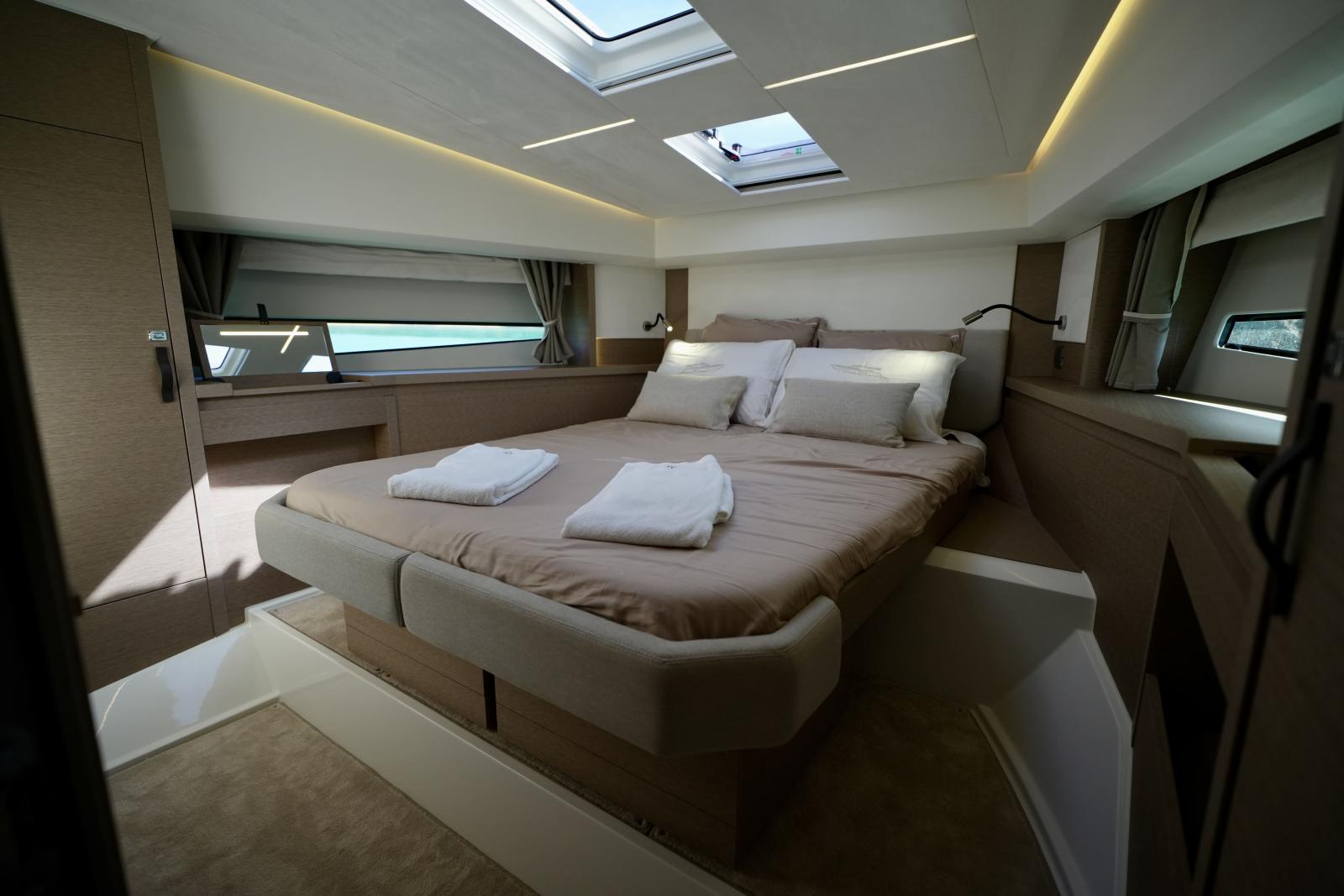 Master cabine avec lit double et 2 cabines invités avec 2 lits simples (dont 1 convertible en 1 lit double)