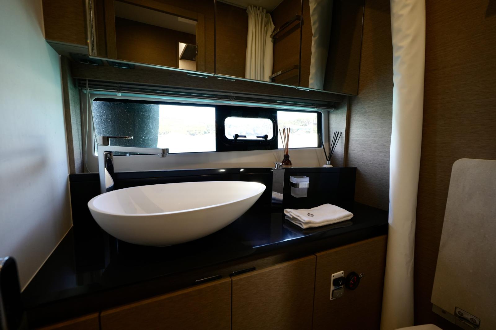 L'antifooling, la révision des moteurs, des IPS et du générateur ont été réalisés en mai 2025. Le bateau est prêt à naviguer.