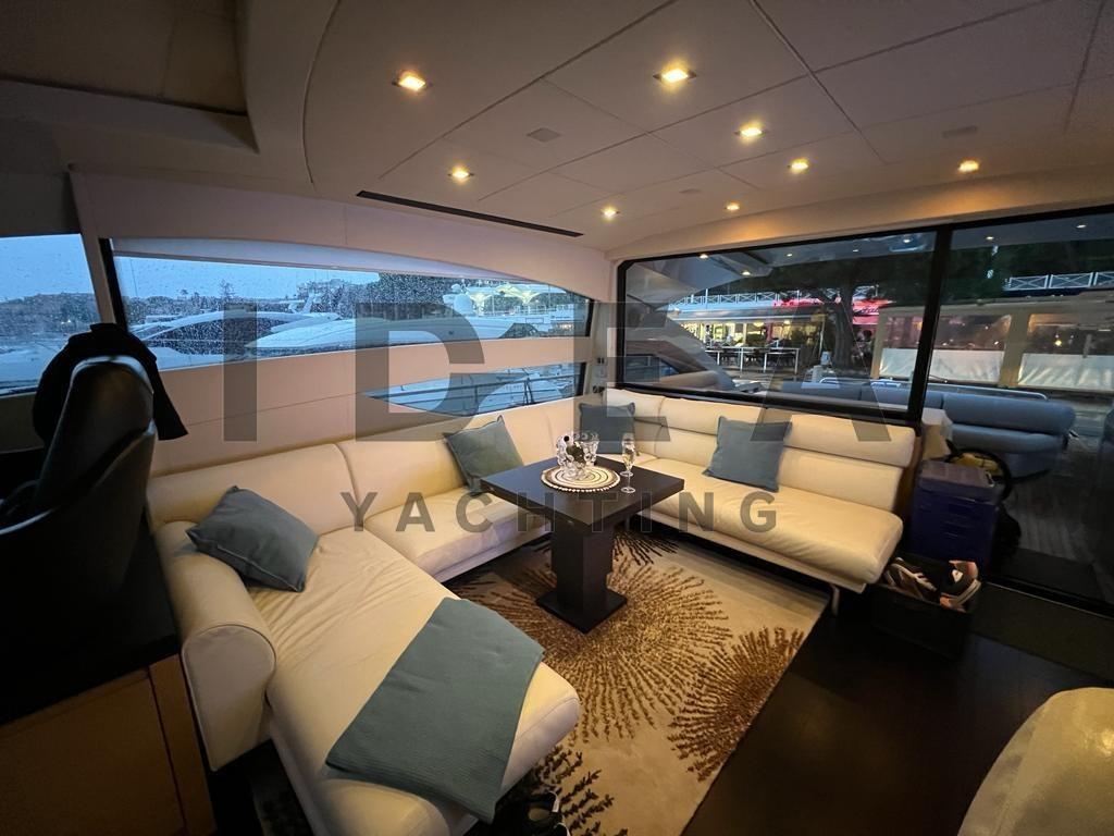 Le Pershing 64 est le navire le plus rapide, le plus sûr et le plus volumineux de sa catégorie, offrant un rapport vitesse/consommation exceptionnel. La forme de la coque ainsi que les hélices de surface, et la couleur métallique gris argent essentielle sont la marque de fabrique de ce fabuleux yacht.