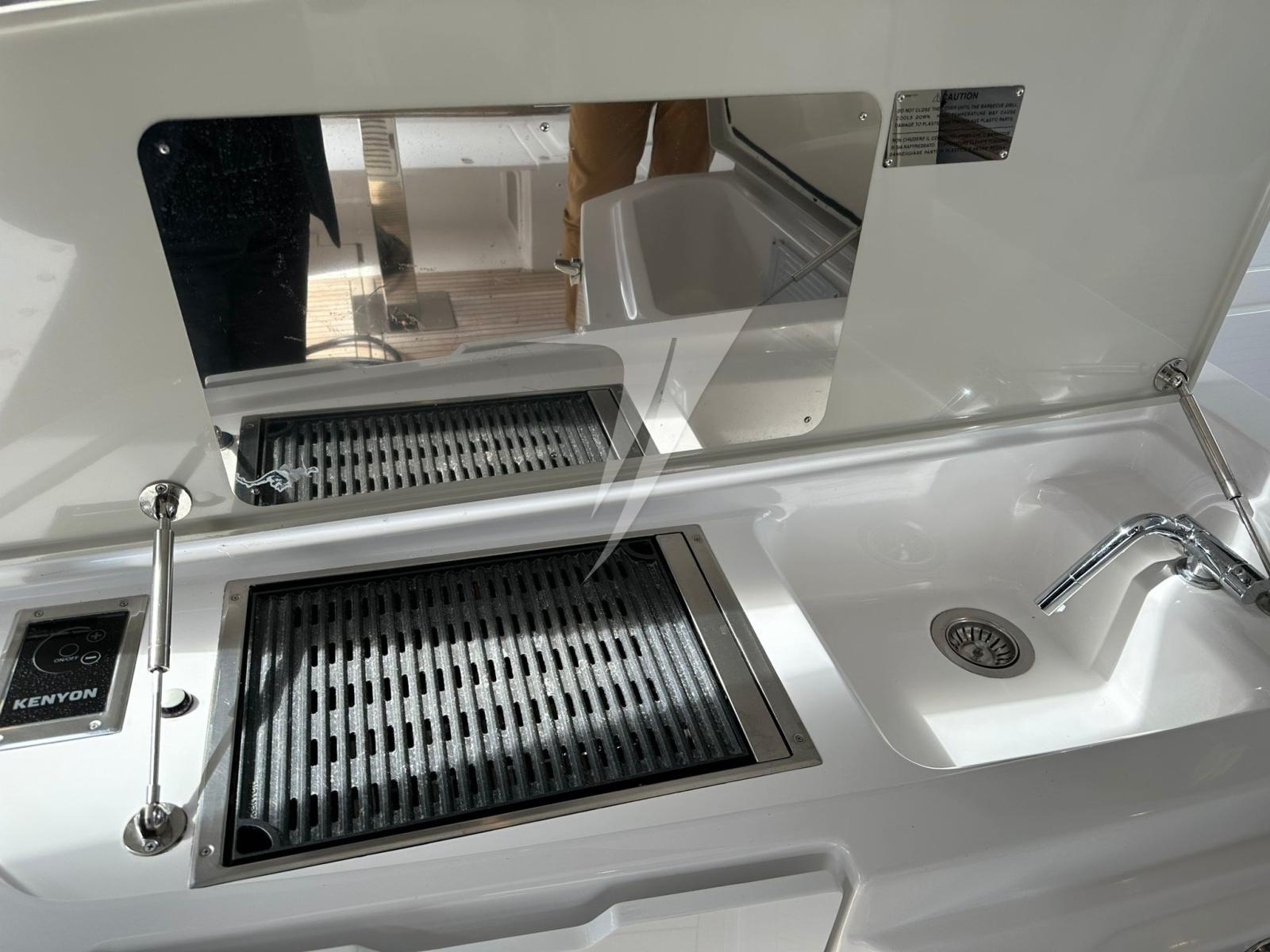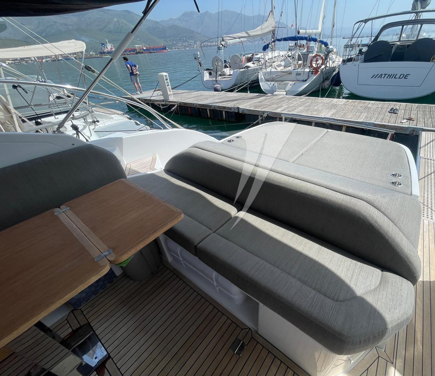 Douche de cockpit, Plateforme arrière, Prise de quai, Guindeau électrique, Stabilisateurs (Seakeeper).