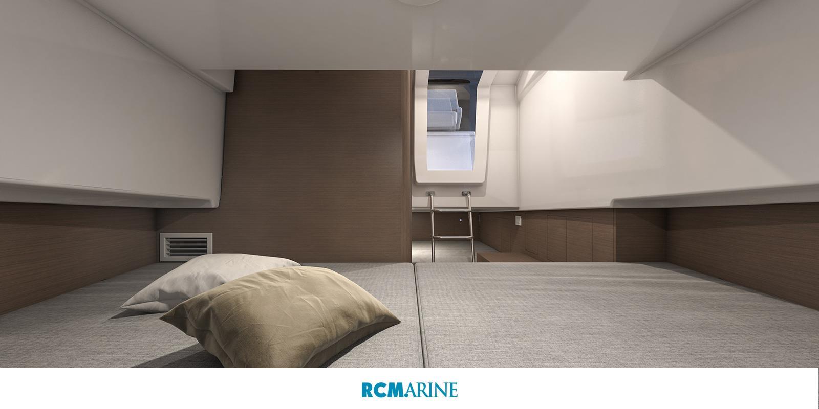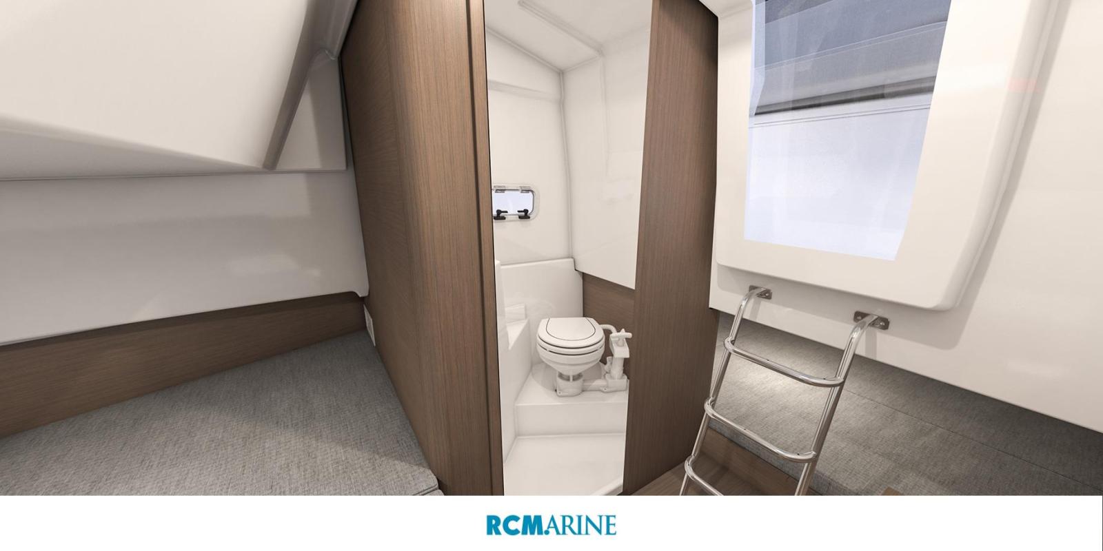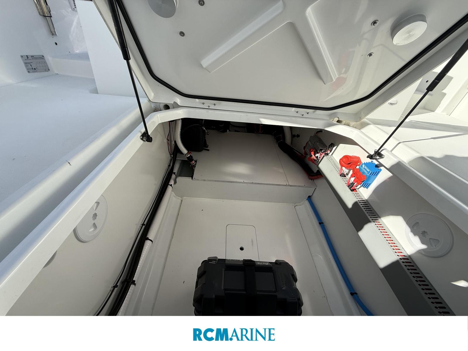 La cabine réserve son lot de caractéristiques de confort inattendues sur une coque open. Le vaste espace intérieur intègre deux couchettes, ainsi qu’une salle d’eau avec WC.