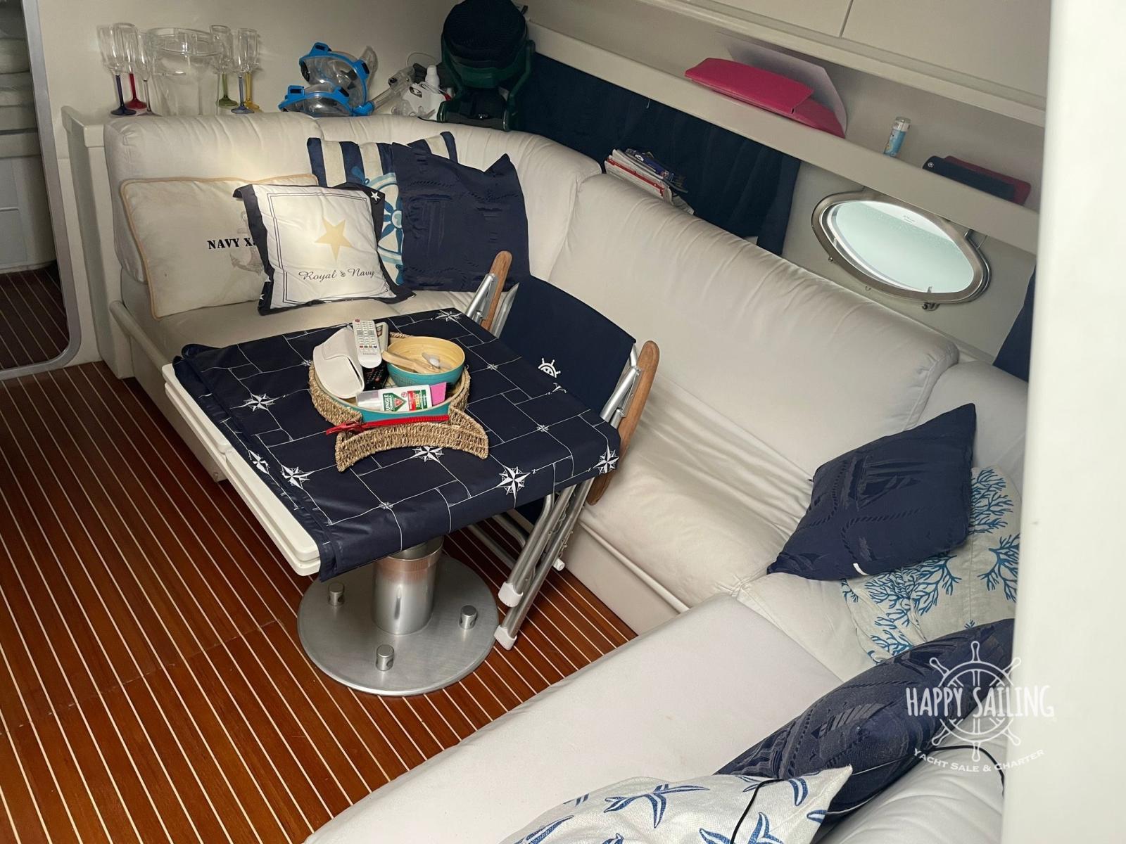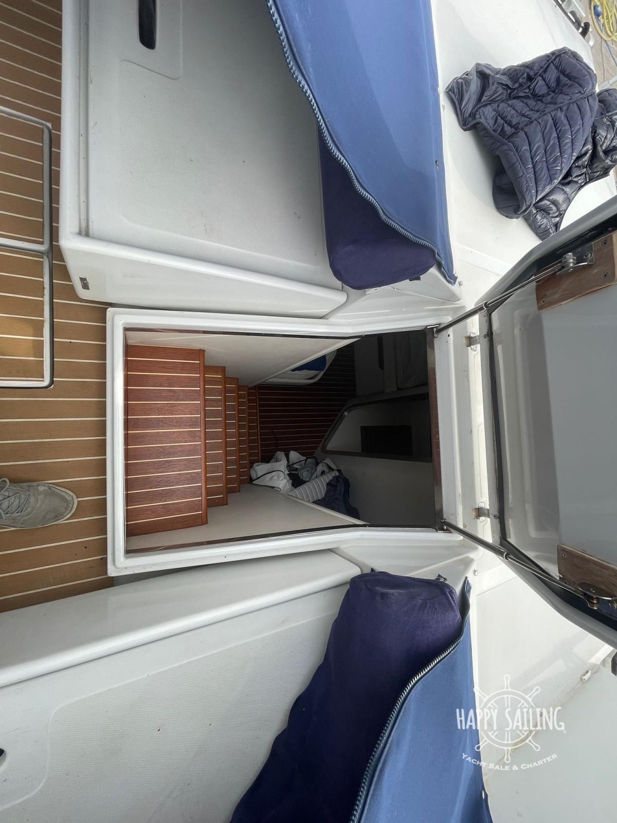Alarme moteur, Eau sous pression (elettrico), Chargeur de batterie (elettrico), Douche de cockpit, Propulseur d'étrave (2024), Flaps électriques, Indicateurs de flaps, Lavabo dans le cockpit, Passerelle (idraulica), Plateforme arrière (teak sintetico nuovo), Cockpit en teck (sintetico nuovo), Prise de quai, Guindeau électrique, Echelle de bain, table de cockpit, Table pliante de salon.