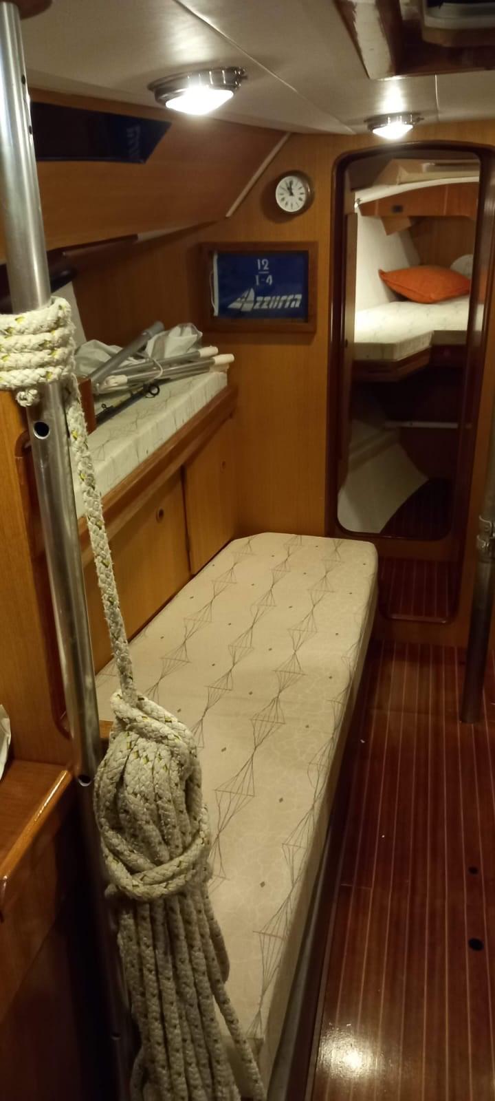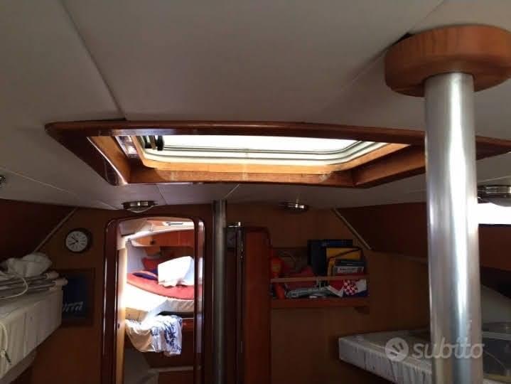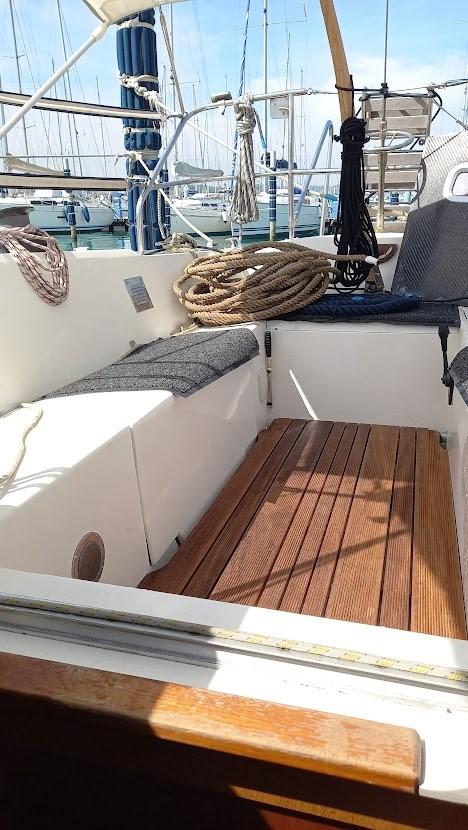Eau sous pression, 2 Batteries (ognuna da 85 ah), Douche de cockpit, Éclairage de courtoisie, Moteur d'annexe (3.5 hp), Panneau solaire (50 w), Passerelle, Plateforme arrière, Pompe de cale manuelle, Prise de quai, Connexion eau sous pression à quai, Guindeau électrique, Gréement monotoron, Echelle de bain, table de cockpit, Annexe (Zodiak 2.40 mtt).