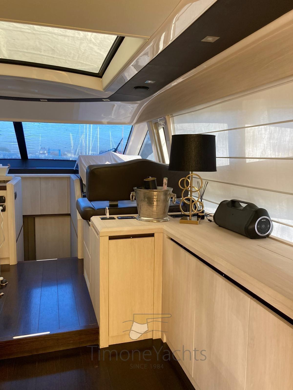 Phare de poursuite, Indicateurs de flaps, Éclairage de courtoisie, Spots sous-marins, Passerelle, Plateforme arrière (up and down), Cockpit en teck, table de cockpit, Winch électrique arrière.