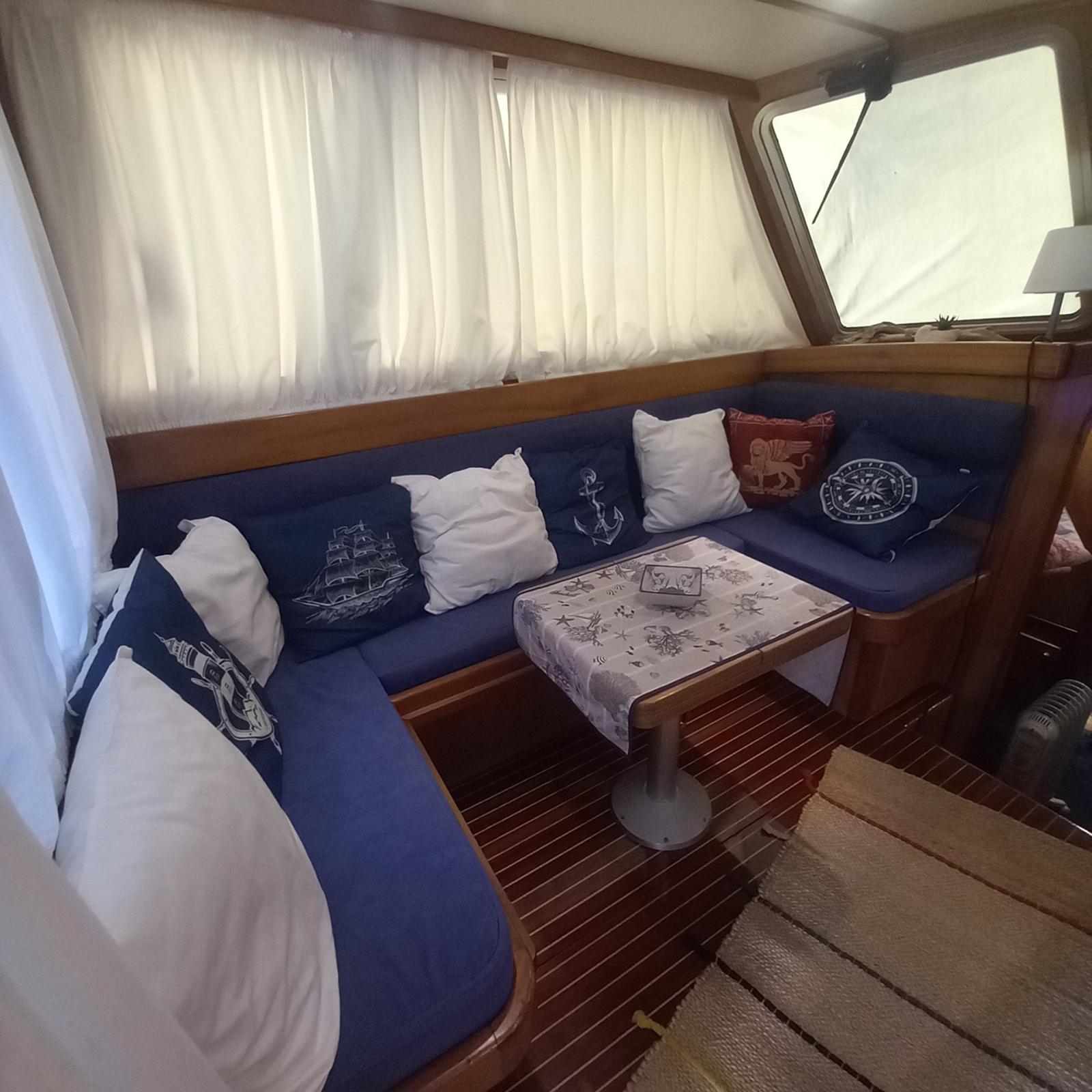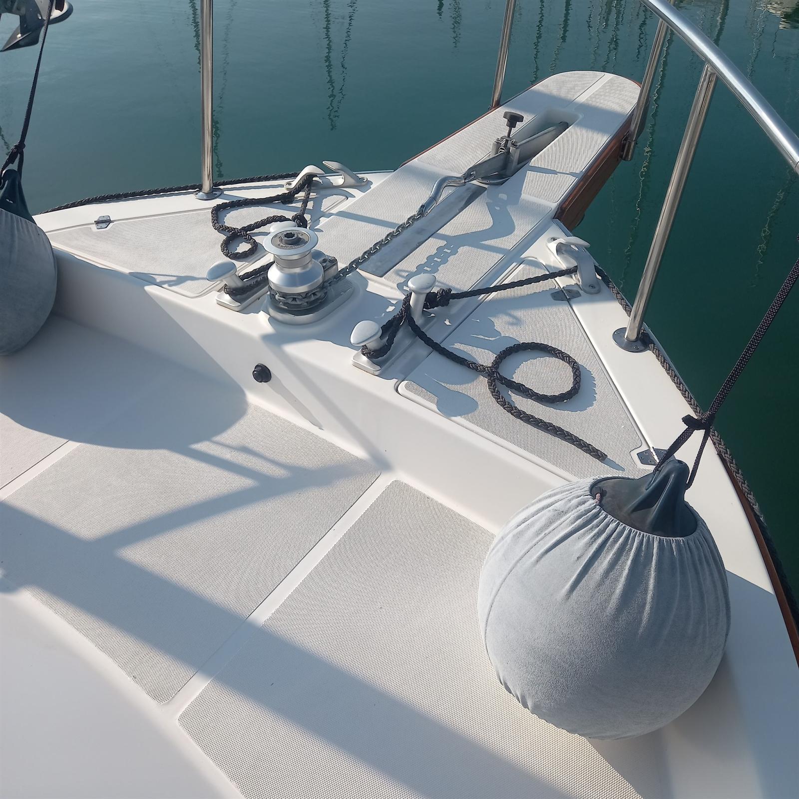 Alarme moteur, Eau sous pression, 3 Batteries, Douche de cockpit, Double barre à roue, Phare de poursuite (2022), Flaps hydrauliques (N°2), Bossoirs pour annexe, Extincteur(s) fixe(s), Éclairage de courtoisie, Passerelle, Plateforme arrière (allungata 2017), Pompe de cale automatique, Cockpit en teck (Rifatto 2018), Prise de quai, Connexion eau sous pression à quai, Onduleur, Répétiteur électronique, Rollbar, Guindeau électrique, Echelle de bain, Système de filtration des eaux usées, Table pliante de salon, Annexe, Corne.